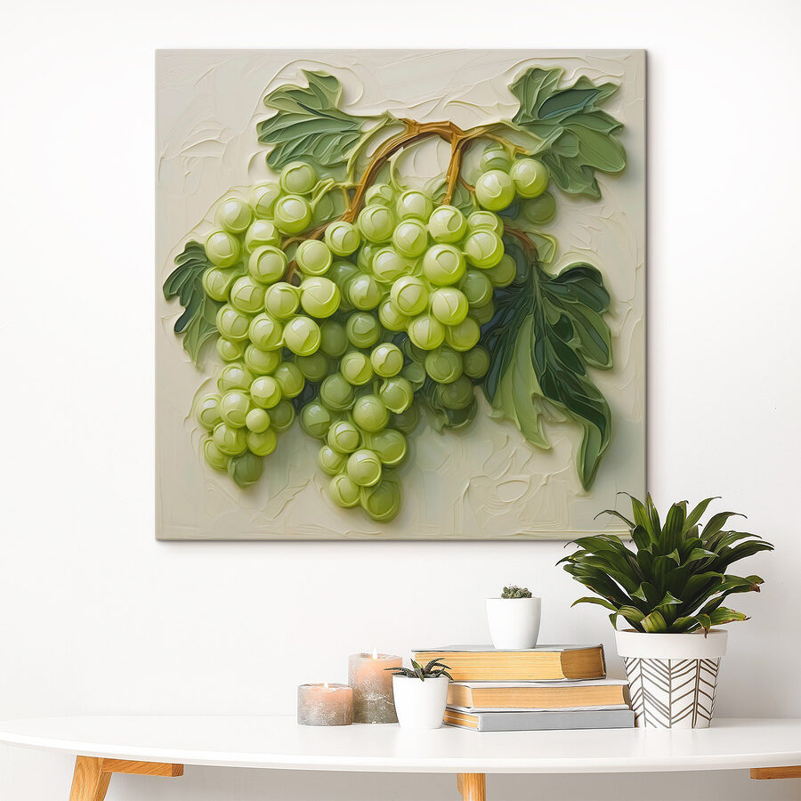 Verwandeln Sie Ihren Raum mit diesem reizvollen Leinwanddruck „Canvas Prints Painting of a Bunch of Grapes” (Leinwanddruck „Gemälde einer Weintraube”). Stellen Sie sich vor, Sie gehen daran vorbei und nehmen einen Hauch von … nun ja, nichts wahr, aber es sieht auf jeden Fall frisch genug aus, um davon zu naschen! Mit seinem üppigen Grün sorgt es für eine fröhliche Atmosphäre und eignet sich perfekt für die Küche oder den Essbereich. Stellen Sie sich vor, Sie empfangen Freunde, alle lachen, haben ein Glas Wein in der Hand und dieses Traubenbild stiehlt allen die Show. Es ist mehr als nur Kunst; es erzählt Geschichten, hellt den Raum auf und inspiriert vielleicht sogar zu einem spontanen Nachmittag mit Snacks zum Thema Trauben. Lassen Sie es Ihre Wand und Ihre Stimmung erhellen!