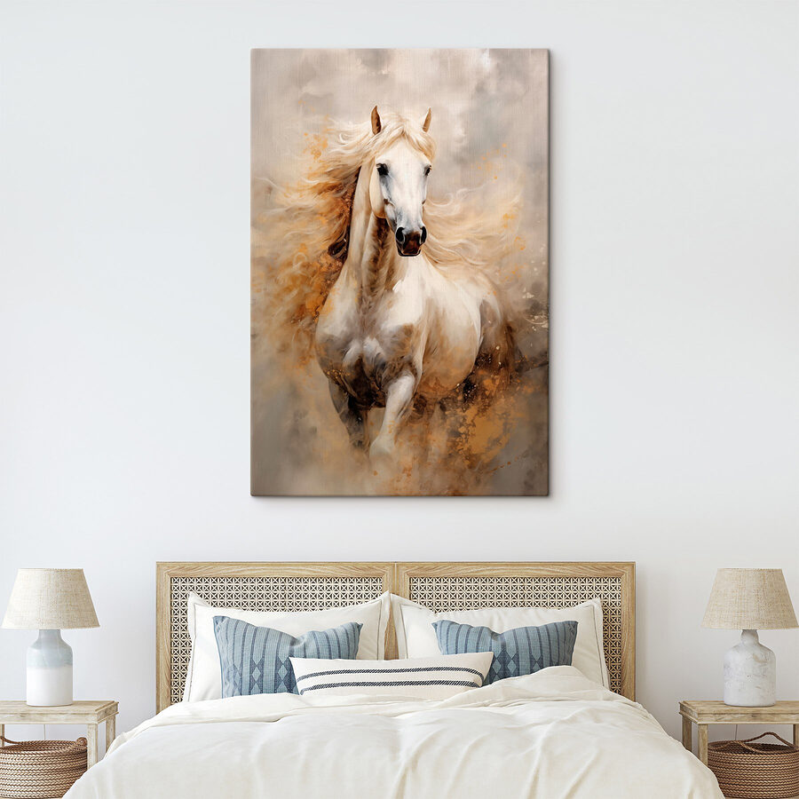 Verwandeln Sie Ihren Raum mit diesem atemberaubenden Leinwanddruck eines majestätischen weißen Pferdes, dessen wallende Mähne fast schon Geheimnisse wilder Abenteuer zu flüstern scheint. Dieses Kunstwerk hängt nicht nur an der Wand, es fesselt das Herz. Stellen Sie sich vor, Sie gehen daran vorbei und werfen einen Blick darauf, als könnte es direkt in Ihr Wohnzimmer galoppieren – oder vielleicht sogar als perfekter Gesprächsaufhänger für Gäste dienen, die ein wenig Reitsportmagie lieben. Die sanften Farbtöne tanzen im Licht und schaffen eine traumhafte Atmosphäre. Ein Hauch von Eleganz, ein Spritzer Wildheit – perfekt für alle, die ihrer Einrichtung ein wenig Persönlichkeit verleihen möchten.