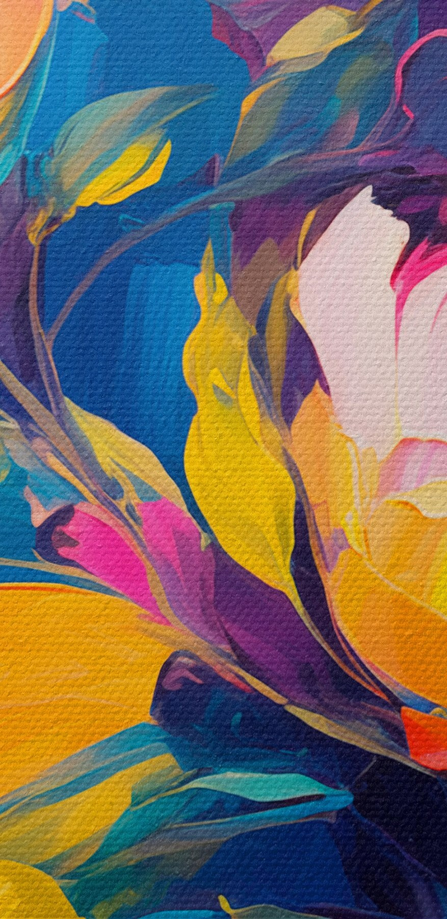 Verschönern Sie jeden Raum mit diesem wunderschönen Leinwanddruck, auf dem Blumen vor einem tiefblauen Hintergrund tanzen. Er ist wie ein Strauß, der niemals verwelkt und Farbe und Freude in Ihr Zuhause bringt, ohne dass Sie ihn gießen müssen. Stellen Sie sich vor, Sie betrachten ihn, während Sie an einem faulen Sonntag Kaffee trinken oder Freunde zu einem Spieleabend einladen – die lebhaften Farben regen Gespräche an und heben die Stimmung. Perfekt, um Ihrem Wohnzimmer einen Hauch von Fröhlichkeit zu verleihen oder einer langweiligen, leeren Wand etwas Persönlichkeit zu geben. Betrachten Sie ihn einfach als tägliche Erinnerung daran, dass Schönheit mühelos und überall zu finden sein kann. Wer würde das nicht wollen?