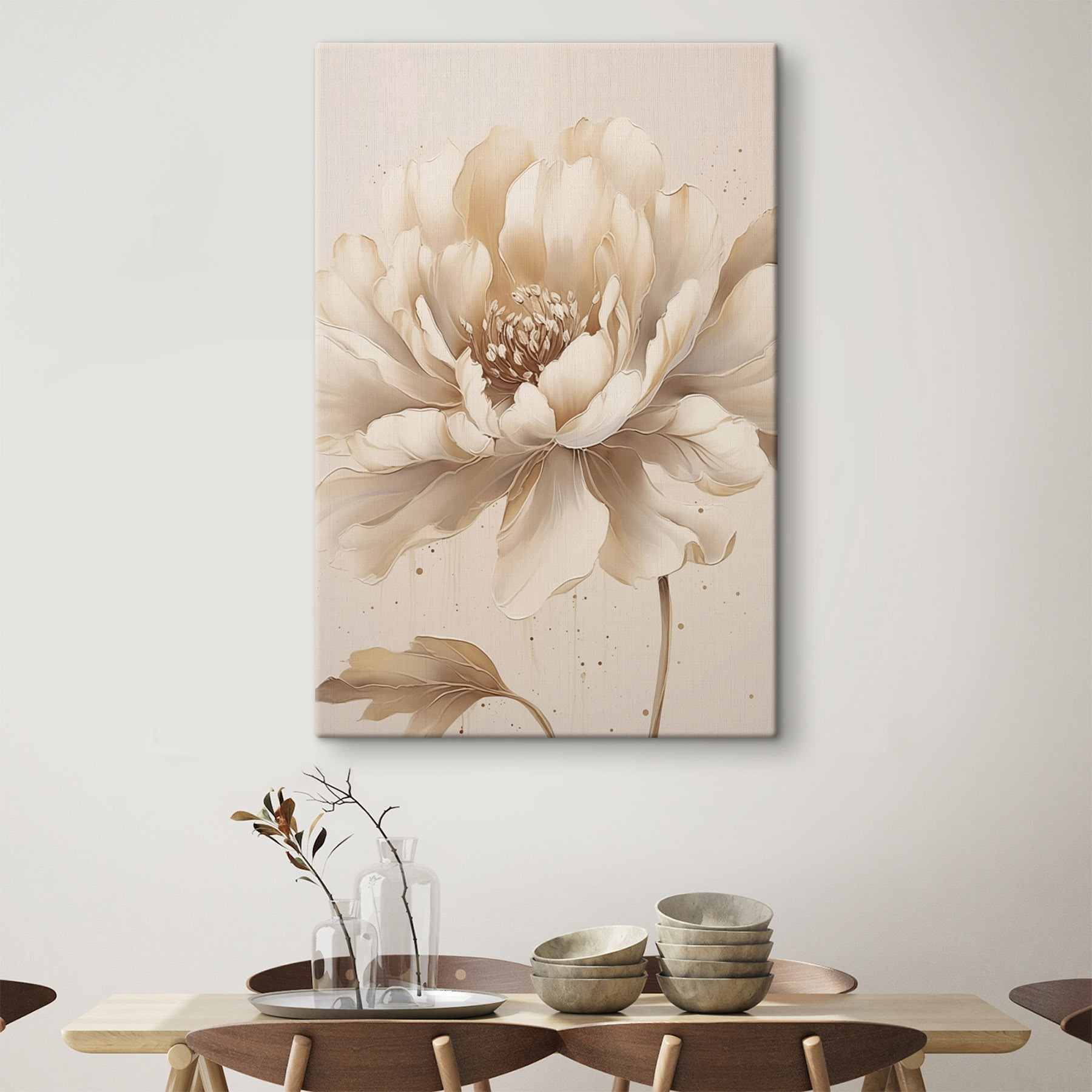 Stellen Sie sich vor, dieser atemberaubende Blumendruck ziert Ihre Wand – es ist, als würden Sie ein Stück Ruhe direkt in Ihren Wohnraum holen. Die sanften Farbtöne und zarten Details der Blüte scheinen Ihnen süße Nichtigkeiten zuzuflüstern und beruhigen Ihren Geist nach einem langen Tag. Stellen Sie sich diese Schönheit in einer gemütlichen Ecke vor, vielleicht über einer Leseecke. Jedes Mal, wenn Sie einen Blick darauf werfen, erinnert er Sie daran, dass Schönheit überall zu finden ist, auch wenn das Leben manchmal etwas hektisch ist. Und ganz ehrlich: Wer möchte nicht einen Hauch von floraler Eleganz, um seinen Tag zu verschönern? Diese Leinwand ist nicht nur Dekoration, sie ist eine Stimmung, eine Atmosphäre und eine sanfte Aufforderung, inne zu halten und die kleinen Dinge zu schätzen.