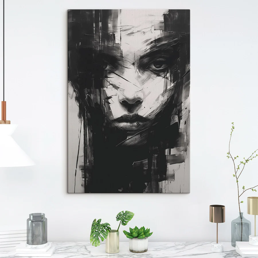 Tauchen Sie ein in eine Welt voller Emotionen mit diesem auffälligen Leinwanddruck „Gemälde eines Frauengesichts“. Es ist nicht nur Kunst, sondern auch ein Gesprächsaufhänger, ein Stimmungsmacher und ein kleines Geheimnis, eingehüllt in Schwarz und Weiß. Stellen Sie sich vor, wie es an der Wand Ihres Wohnzimmers oder in einer gemütlichen Leseecke hängt – es fühlt sich fast so an, als würde sie Sie beobachten und Sie dazu herausfordern, Ihre Gedanken zu erforschen.