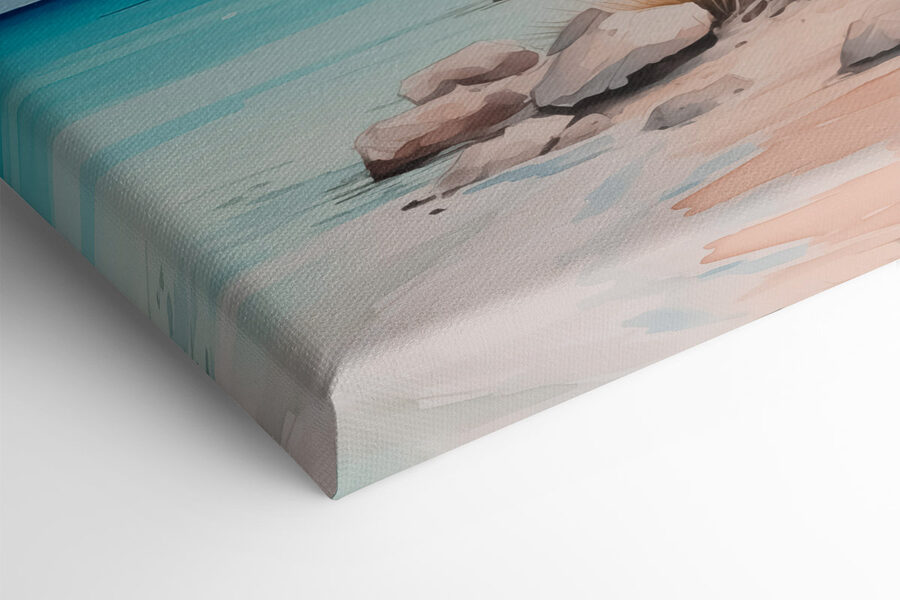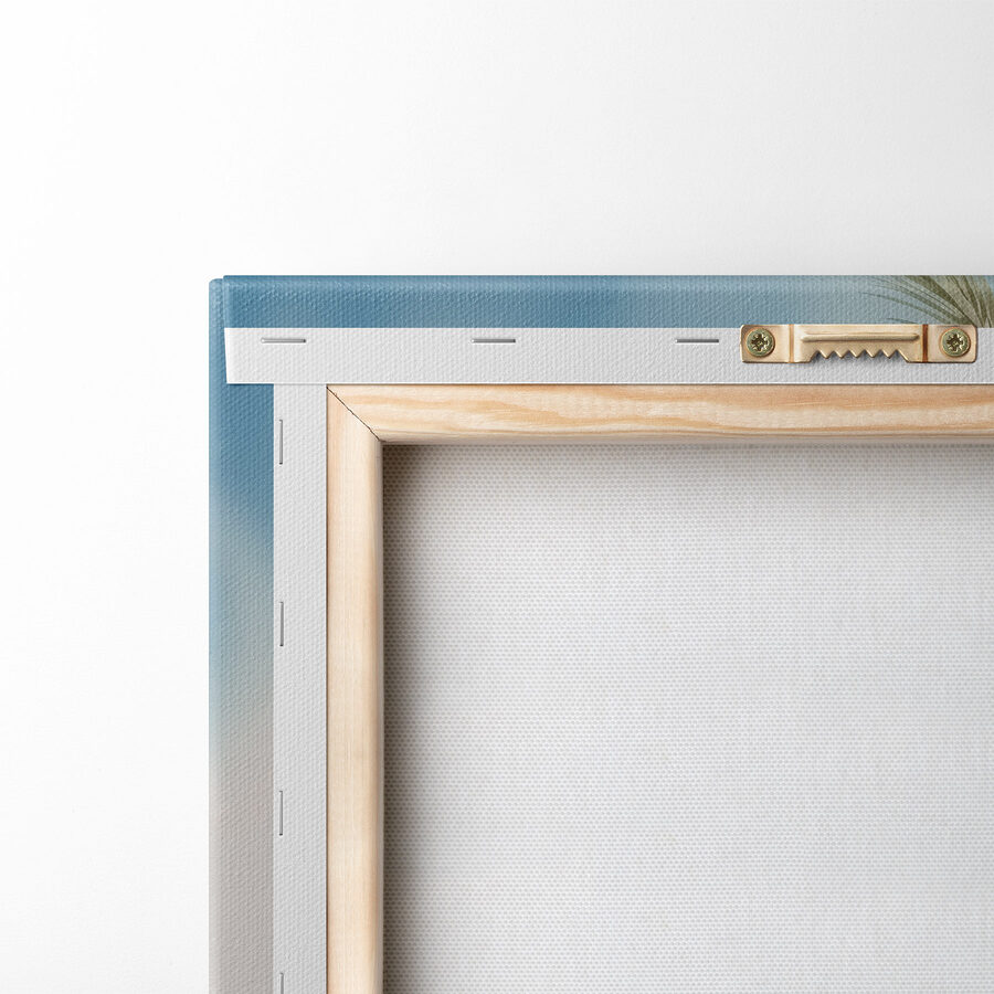 Stellen Sie sich Folgendes vor: weicher Sand zwischen Ihren Zehen, sanft an die Küste schlagende Wellen und Palmen, die sich in der warmen Brise wiegen. Dieser Leinwanddruck mit dem Titel „Palm Trees on a Beach” versetzt jeden direkt in einen traumhaften Küstenurlaub. Es ist, als würde man ein Stück Paradies in sein Zuhause holen – ohne Sonnenbrand oder Sand, der von Möwen aufgewirbelt wird.