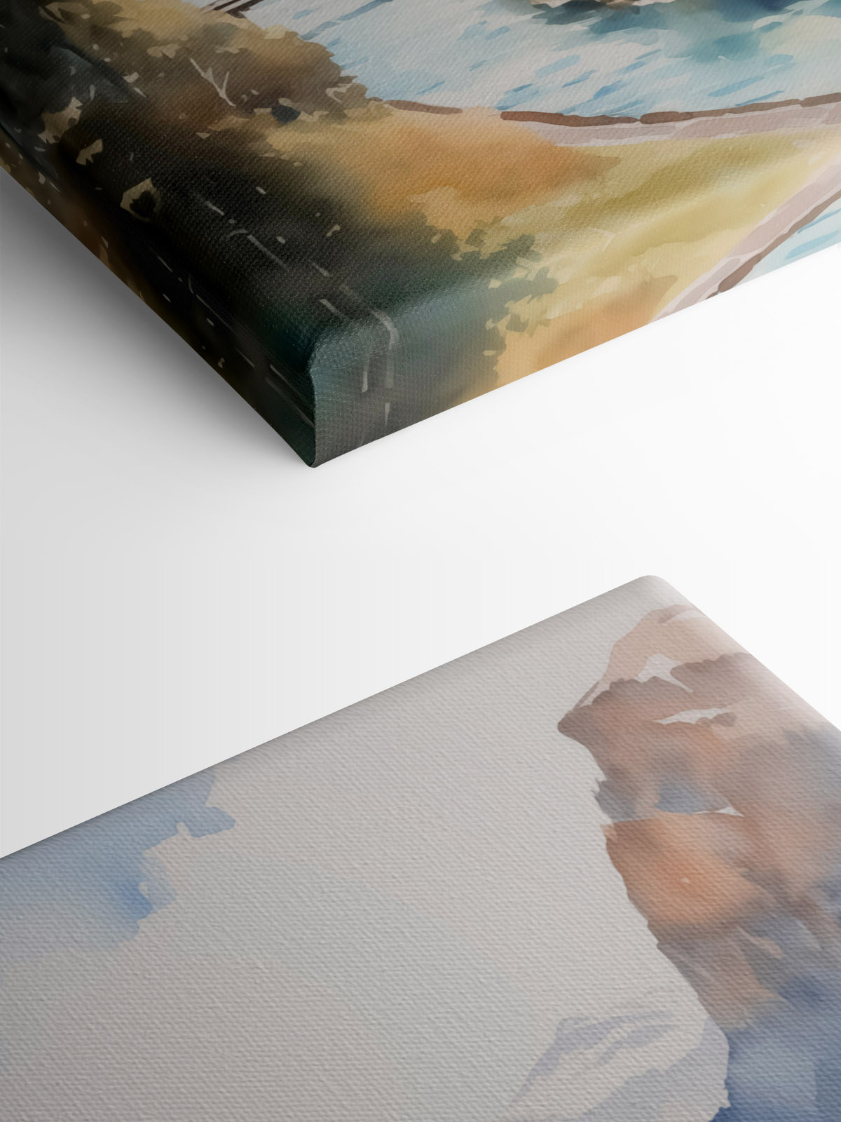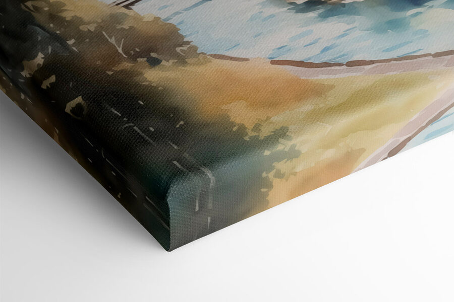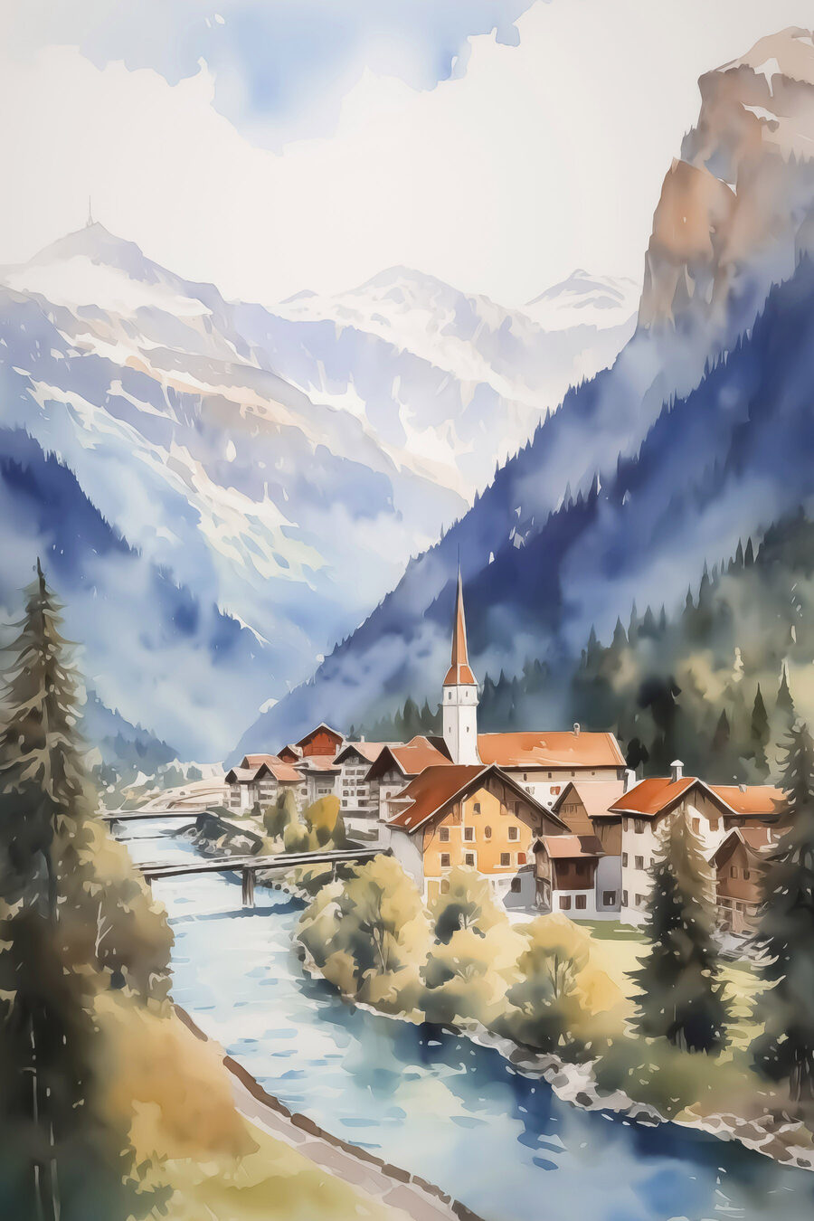 Stellen Sie sich vor, Sie betreten ein charmantes kleines Dorf inmitten hoch aufragender Berge. Genau das fängt dieser Leinwanddruck in Aquarellfarben ein – die ruhige Schönheit eines Rückzugsortes in den Bergen. Sanfte Blautöne verschmelzen mit warmen Erdfarben und schaffen eine gemütliche Atmosphäre, in der man sich sofort wie zu Hause fühlt. Hängen Sie ihn in Ihrem Wohnzimmer auf und beobachten Sie, wie er Gespräche über Abenteuer, versteckte Zufluchtsorte und Träume von Reisen an Orte wie diesen anregt. Die anmutigen Pinselstriche des Gemäldes vermitteln ein Gefühl der Ruhe, ähnlich wie eine sanfte Brise, die durch die Bäume rauscht. Und wer liebt nicht ein Kunstwerk, das einem zuflüstert: „Entspann dich, du bist im Urlaub“? Perfekt für alle, die sich einen Hauch von Natur wünschen, ohne die Couch zu verlassen!