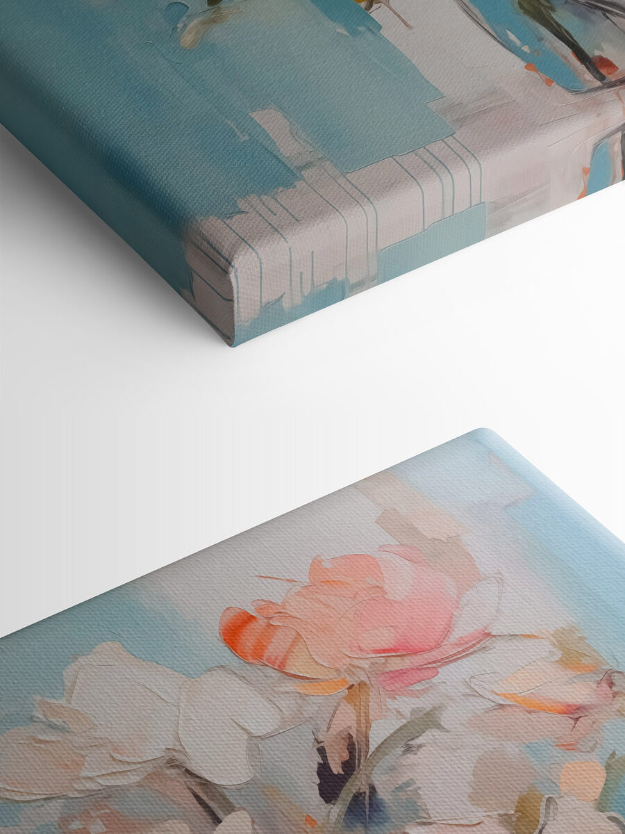 Verändern Sie jeden Raum mit diesem lebendigen Leinwanddruck von Blumen in einer Vase. Stellen Sie sich vor, Sie betreten einen Raum und werden von einer Explosion von Blütenblättern und lebendigen Farben begrüßt – es ist wie ein kleiner Garten, der Sie zu Hause willkommen heißt. Die sanften Pastelltöne tanzen vor einem kühlen blauen Hintergrund und schaffen eine heitere Atmosphäre. Jeder Blick auf dieses Stück könnte Ihnen ein Lächeln entlocken oder sogar einen Tagtraum von sonnigen Tagen hervorrufen. Perfekt, um eine ruhige Ecke zu erhellen oder eine gemütliche Ecke zu verschönern – ein reizender Touch, der Wärme und Charme versprüht. Wer würde sich nicht über ein bisschen Natur im Haus freuen?