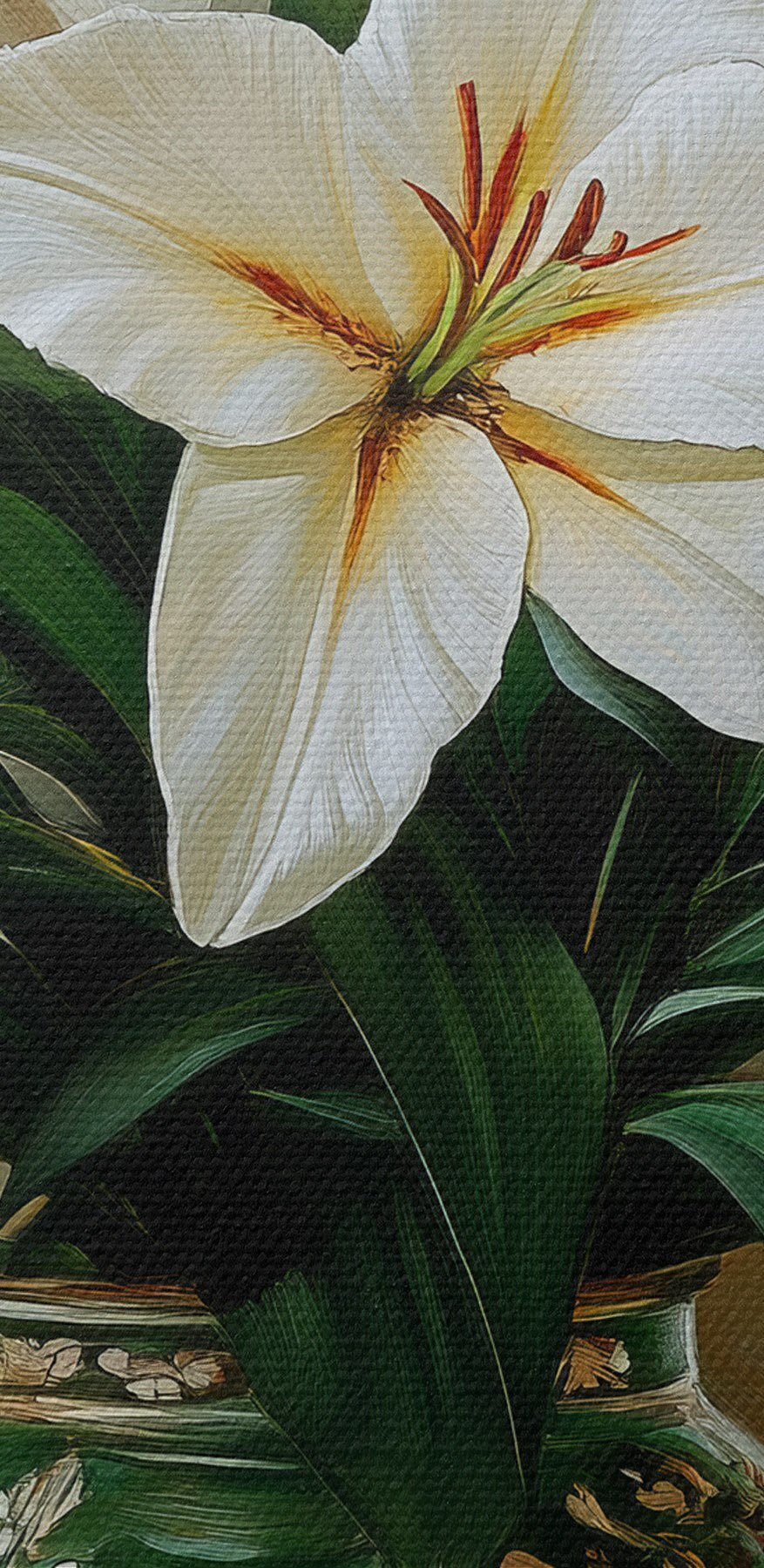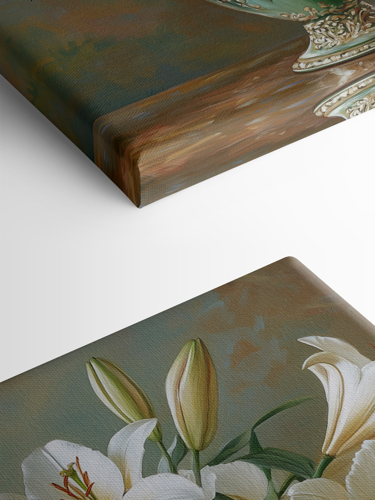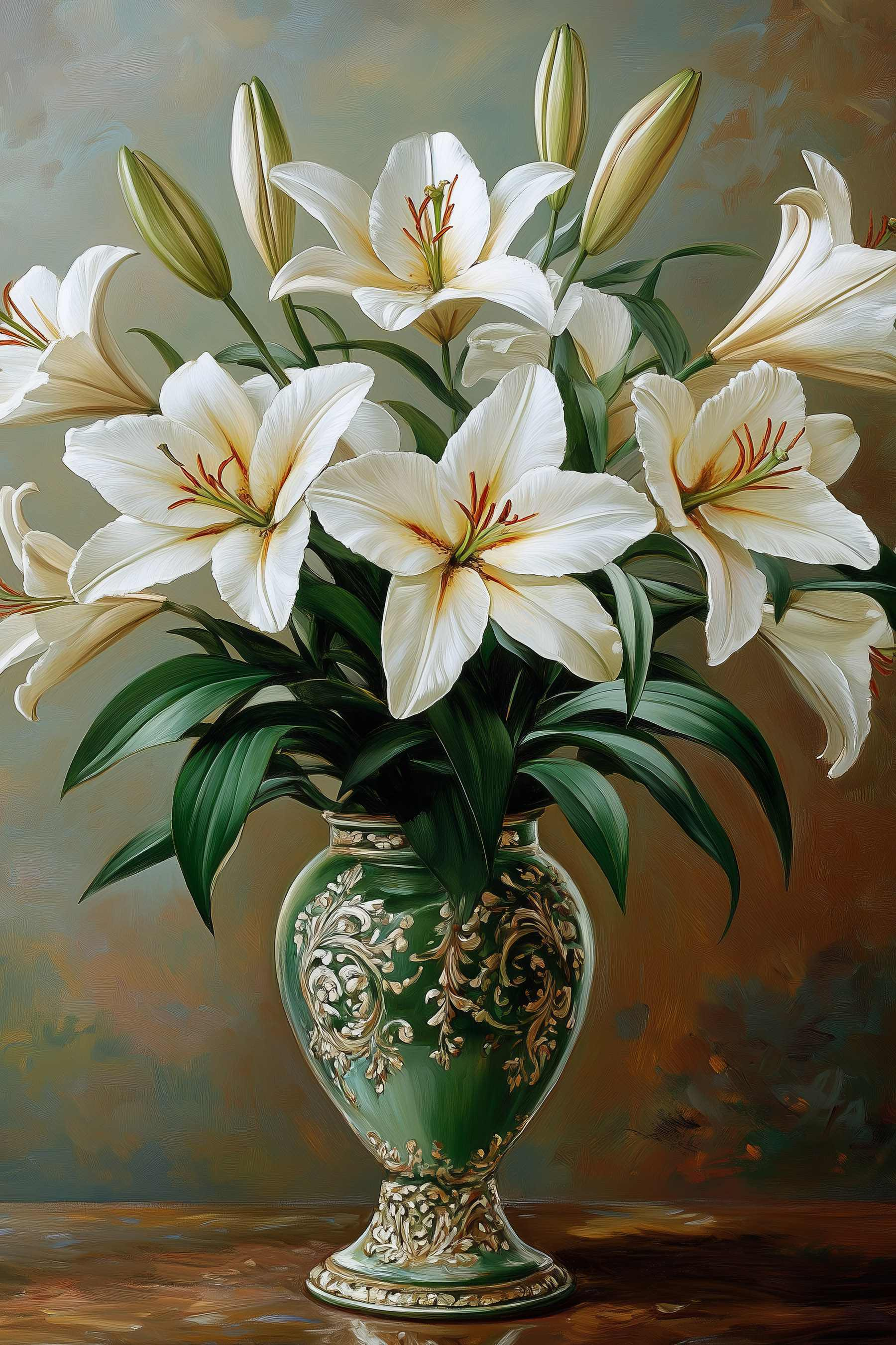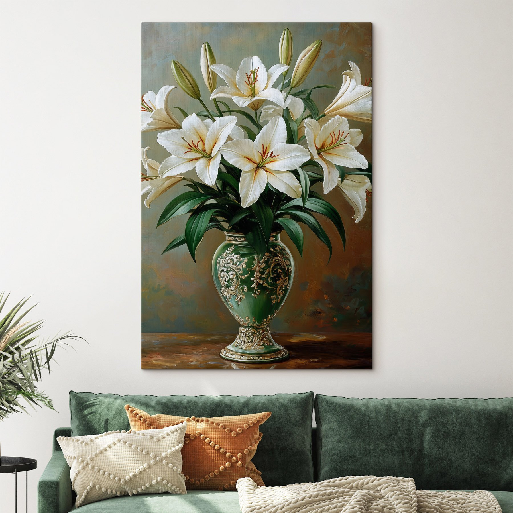 Verschönern Sie jede Wand mit diesem atemberaubenden Leinwanddruck einer Vase voller wunderschöner weißer Blumen. Es ist, als würde man einen Hauch frischer Luft in sein Zuhause bringen, nur ohne Pollen. Stellen Sie sich vor, wie dieses lebendige Kunstwerk Ihr Wohnzimmer oder Ihre gemütliche Ecke erhellt und sofort die Stimmung des Raumes hebt. Die detailreiche grüne Vase verleiht dem Bild einen Hauch von Eleganz und ist ein perfekter Gesprächsaufhänger. Und wer würde nicht gerne Blumen betrachten, die niemals welken? Es ist perfekt für Tage, an denen Sie ein wenig sonnige Inspiration brauchen. Ein Hauch von Natur, genau dort, wo Sie ihn brauchen!