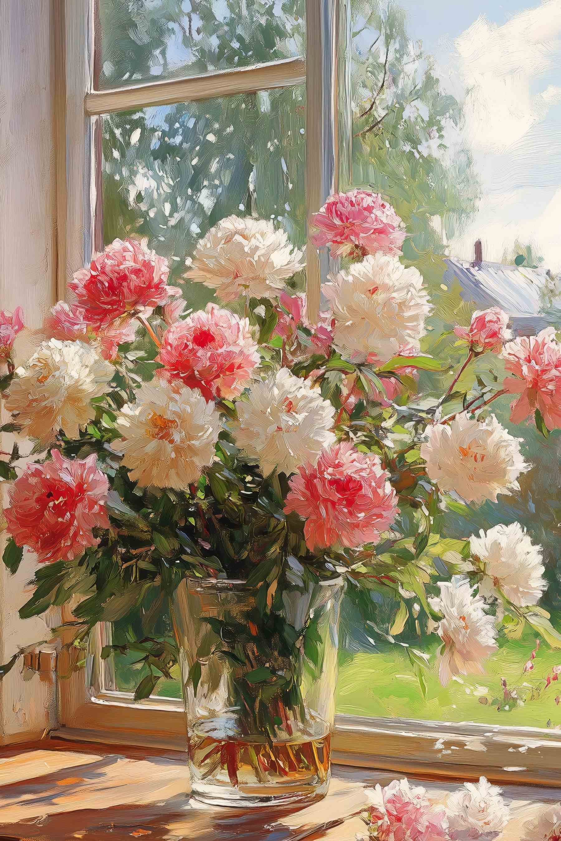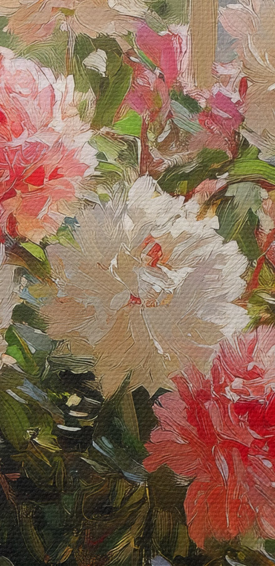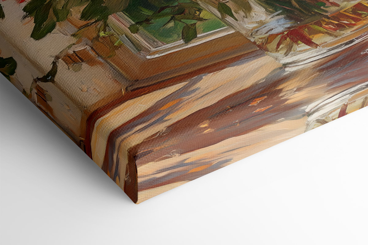 Verschönern Sie jeden Raum mit dem Leinwanddruck „Vase mit Blumen vor einem Fenster“. Dieses Kunstwerk ist nicht nur eine Dekoration, sondern ein Erlebnis. Stellen Sie sich vor, Sie entspannen sich an einem gemütlichen Nachmittag, während Sonnenlicht hereinströmt und diese wunderschönen Blüten Sie an einen sonnigen Tag im Garten erinnern. Die zarten Rosa- und Weißtöne heben sich von dem ruhigen Hintergrund ab und vermitteln das Gefühl, als würde der Frühling für immer bleiben. Perfekt für das Wohnzimmer, das Homeoffice oder sogar eine gemütliche Leseecke. Es ist, als hätte man ein Stück Natur im Haus, ganz ohne Allergien! Die fröhliche Stimmung, die es verbreitet, zaubert Ihnen vielleicht ein Lächeln ins Gesicht oder weckt sogar die Lust auf eine gute Tasse Tee. Ganz ehrlich, wer würde das nicht lieben?