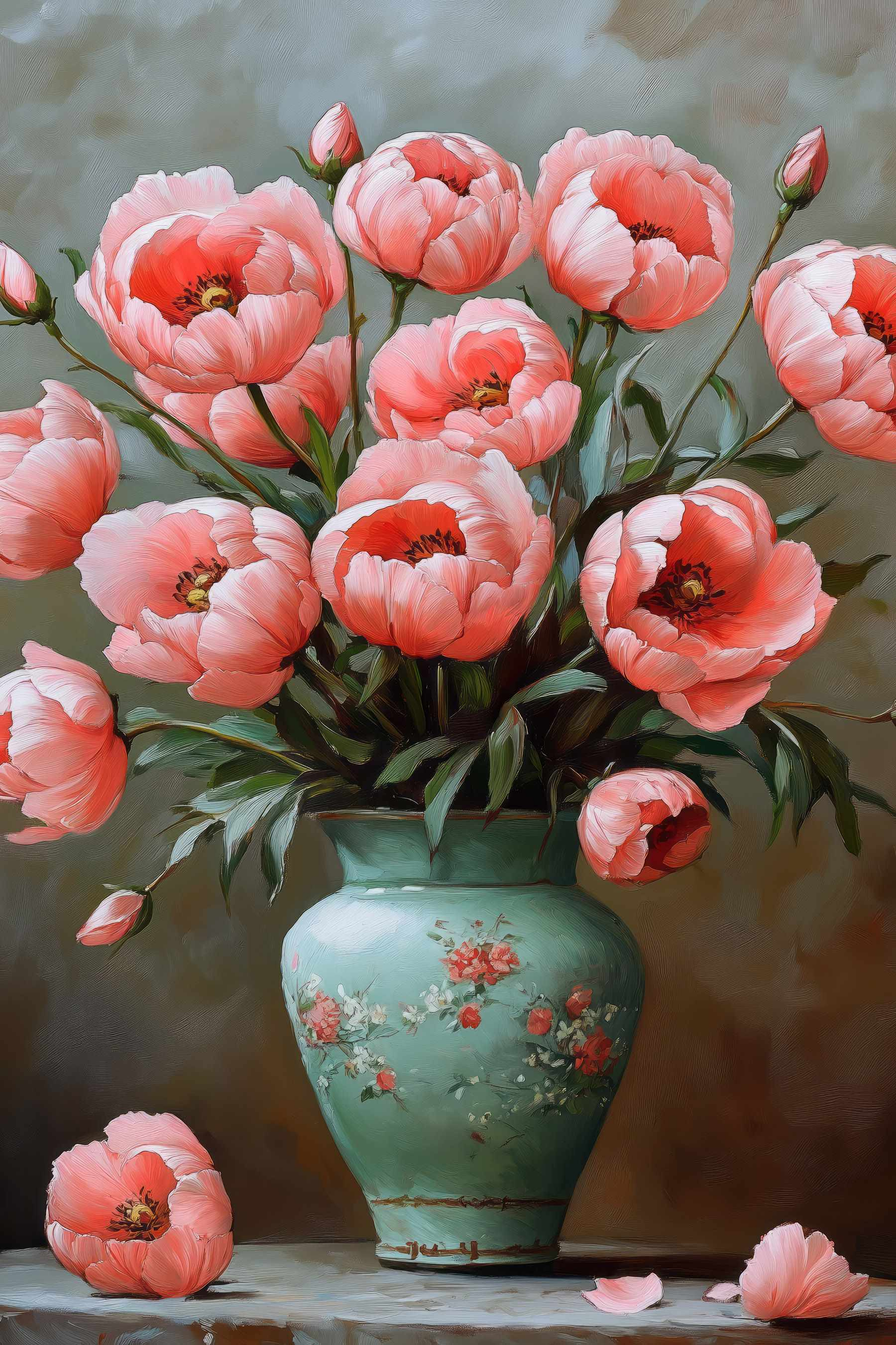 Verschönern Sie Ihre Wände mit diesem atemberaubenden Leinwanddruck von rosa Blumen in einer bezaubernden Vase, die geradezu vor Leben sprüht. Das Kunstwerk fängt jedes Blütenblatt perfekt ein – es ist wie ein kleines Stück Blumenzauber, das Ihnen jedes Mal, wenn Sie daran vorbeigehen, ein Lächeln ins Gesicht zaubert. Stellen Sie sich vor: Es ist ein frischer Morgen, und diese hübsche Vase flüstert: „Hey, lass uns einen Kaffee trinken und den Tag fantastisch machen!“ Perfekt für Wohnzimmer, Küchen oder überall dort, wo ein Hauch von Naturcharme gut tun könnte. Diese zarten Rosatöne sind wie eine warme Umarmung für Ihren Raum. Ein kleiner Hauch von Fantasie, der jeden daran erinnert, dass Schönheit überall zu finden ist – sie wartet nur darauf, zu erblühen.