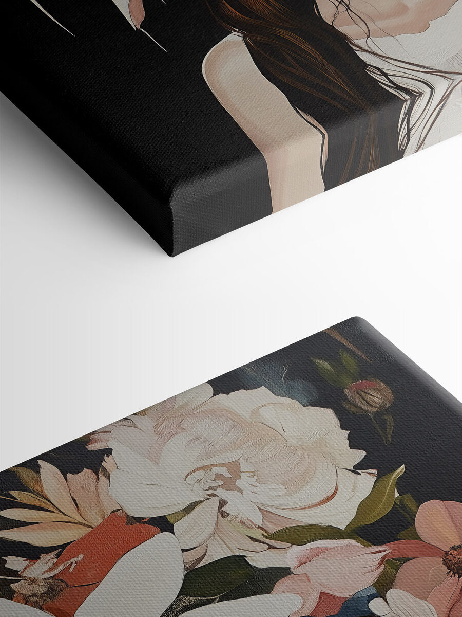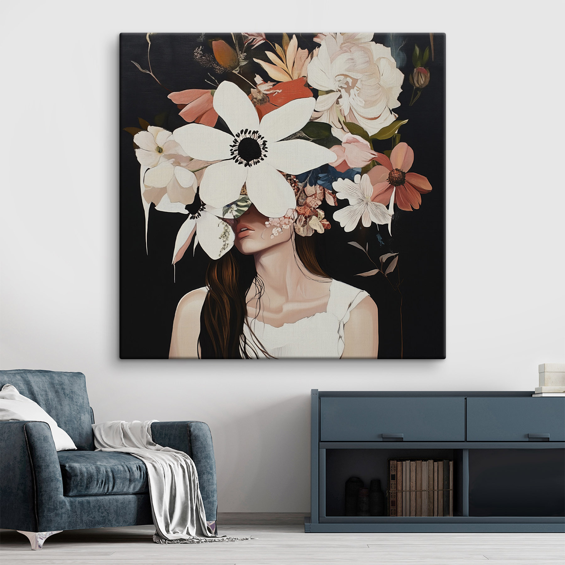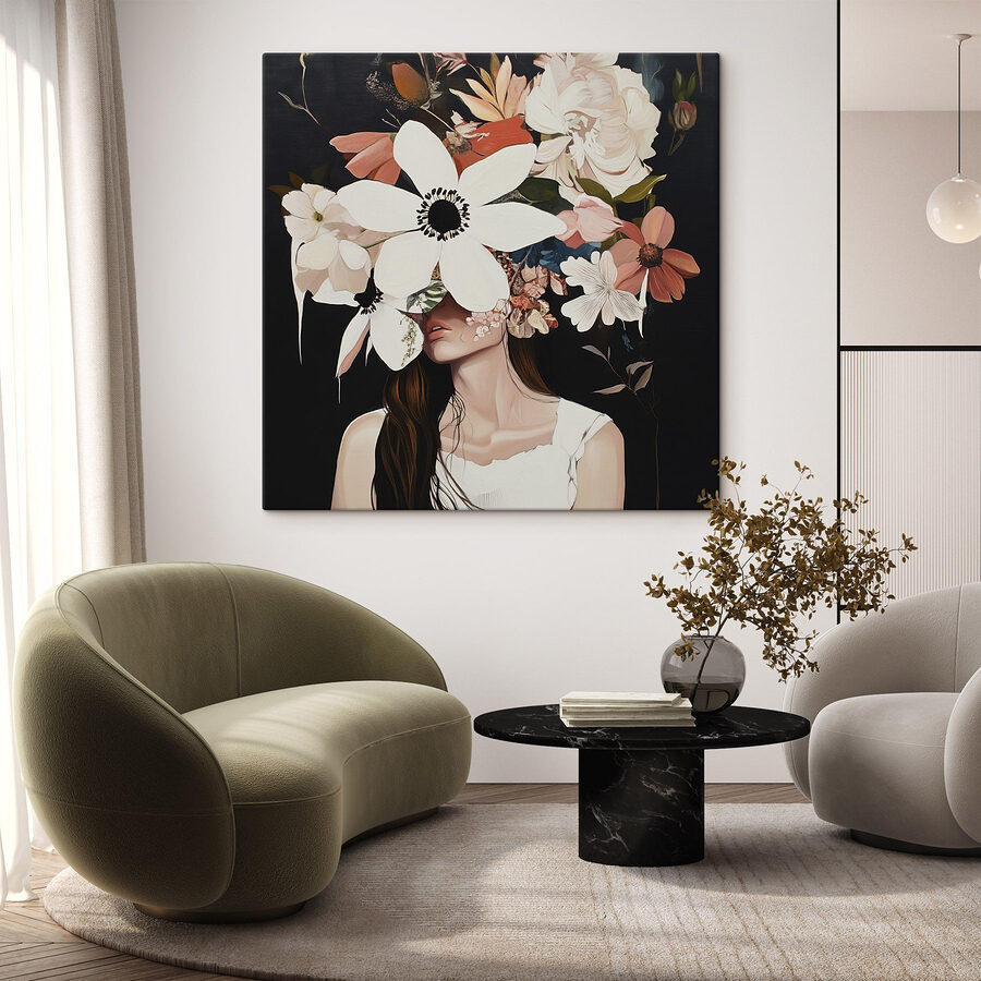 Verschönern Sie Ihren Raum mit diesem atemberaubenden Leinwanddruck einer Frau, die mit einer Kaskade von Blumen geschmückt ist. Es ist, als hätte sie jede Blüte aus dem Garten gepflückt und gesagt: “Lasst uns feiern!” Durch den Kontrast des dunklen Hintergrunds kommen die leuchtenden Blumen besonders gut zur Geltung, fast so, als ob sie dem Betrachter die Hand reichen würden. Stellen Sie sich vor, dass Sie jeden Tag an dieser Schönheit vorbeigehen – vielleicht zaubert sie Ihnen ein oder zwei Lächeln ins Gesicht. Dieses Bild eignet sich perfekt für ein Wohnzimmer oder eine gemütliche Ecke und versprüht den Charme der Natur und einen Hauch von Laune. Verleihen Sie Ihrer Wand einen Hauch von modernem Kunstzauber und lassen Sie sie zu Gesprächen anregen!