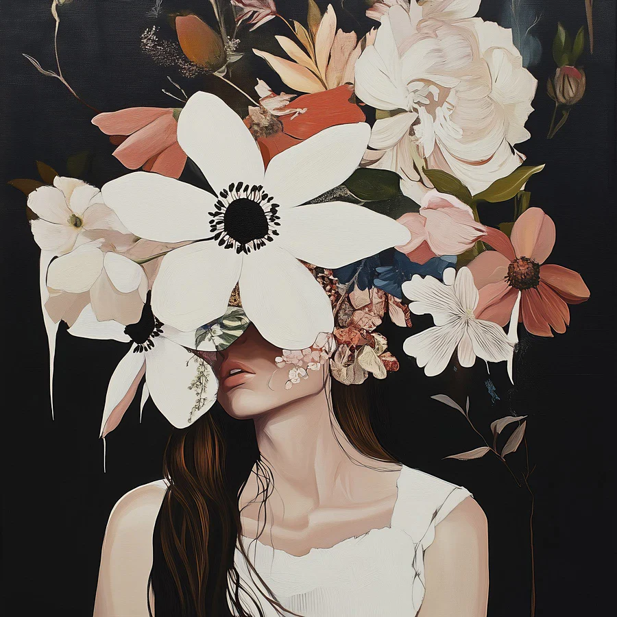 Verschönern Sie Ihren Raum mit diesem atemberaubenden Leinwanddruck einer Frau, die mit einer Kaskade von Blumen geschmückt ist. Es ist, als hätte sie jede Blüte aus dem Garten gepflückt und gesagt: “Lasst uns feiern!” Durch den Kontrast des dunklen Hintergrunds kommen die leuchtenden Blumen besonders gut zur Geltung, fast so, als ob sie dem Betrachter die Hand reichen würden. Stellen Sie sich vor, dass Sie jeden Tag an dieser Schönheit vorbeigehen – vielleicht zaubert sie Ihnen ein oder zwei Lächeln ins Gesicht. Dieses Bild eignet sich perfekt für ein Wohnzimmer oder eine gemütliche Ecke und versprüht den Charme der Natur und einen Hauch von Laune. Verleihen Sie Ihrer Wand einen Hauch von modernem Kunstzauber und lassen Sie sie zu Gesprächen anregen!