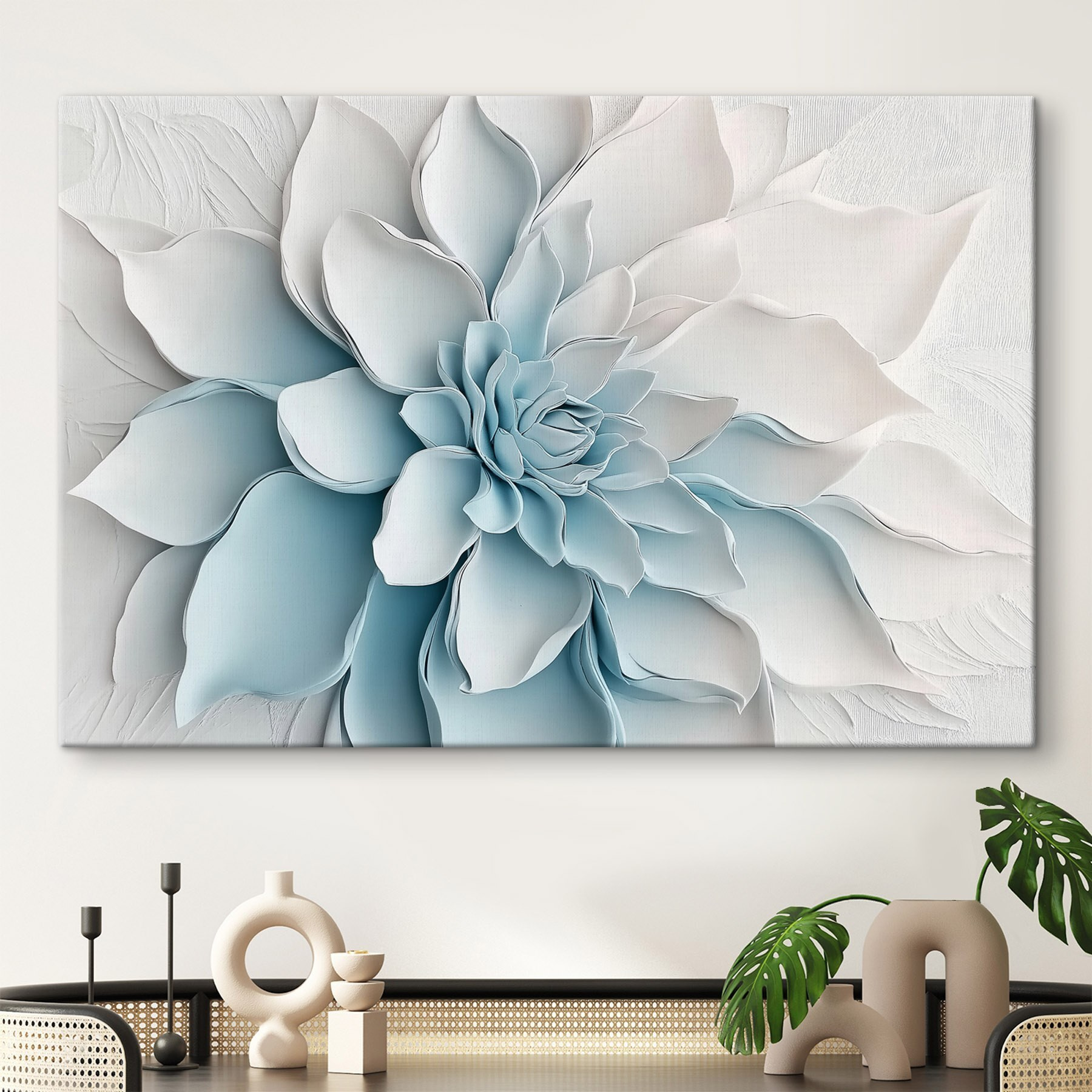 Bringen Sie einen Hauch von frischer Luft in jeden Raum mit diesem eindrucksvollen Leinwanddruck “Wandbilder White Flower Made of Paper”. Es ist wie ein Flüstern der Natur an Ihrer Wand, das Sonnenschein und Gelassenheit direkt in Ihr Zuhause einlädt. Die sanften Weiß- und Blautöne schaffen eine friedliche Atmosphäre, die selbst den gewöhnlichsten Raum in einen gemütlichen Rückzugsort verwandeln kann. Stellen Sie sich vor, Sie nippen an Ihrem Morgenkaffee, während diese Schönheit auf Sie zurückblickt – das ist die Art von morgendlichem Stimmungsaufschwung, die jeder verdient! Die zarten Schichten des Designs rufen ein Gefühl der Ruhe hervor und erinnern Sie daran, es ruhig angehen zu lassen und die einfachen Freuden des Lebens zu genießen. Ob im Wohnzimmer oder in einer ruhigen Ecke, es wird mit Sicherheit für Gesprächsstoff sorgen und die Gäste zum Stehenbleiben bewegen. Diese Leinwand ist nicht nur Kunst, sie ist ein Erlebnis, das auf Sie wartet!