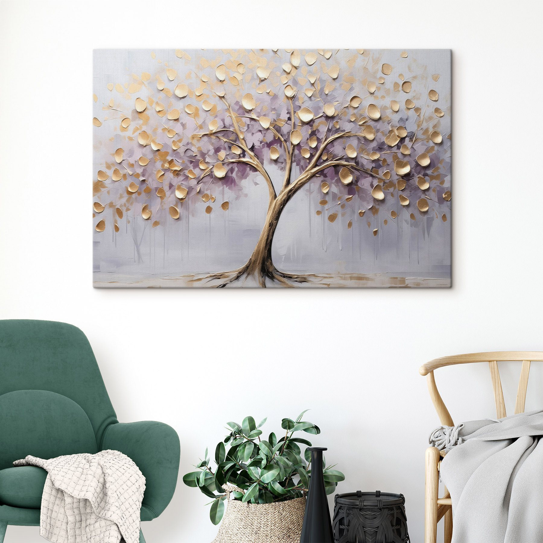 Stellen Sie sich vor, Sie betreten eine heitere Welt mit diesem Leinwanddruck, der einen anmutigen Baum zeigt, dessen Äste mit schönen Blättern geschmückt sind, die in der Brise zu tanzen scheinen. Die sanften Farben verbreiten eine friedliche Stimmung, die jeden Raum sofort aufwertet. Stellen Sie sich das Bild über einer gemütlichen Couch oder in einer ruhigen Leseecke vor, wo es zum Innehalten und Nachdenken einlädt.