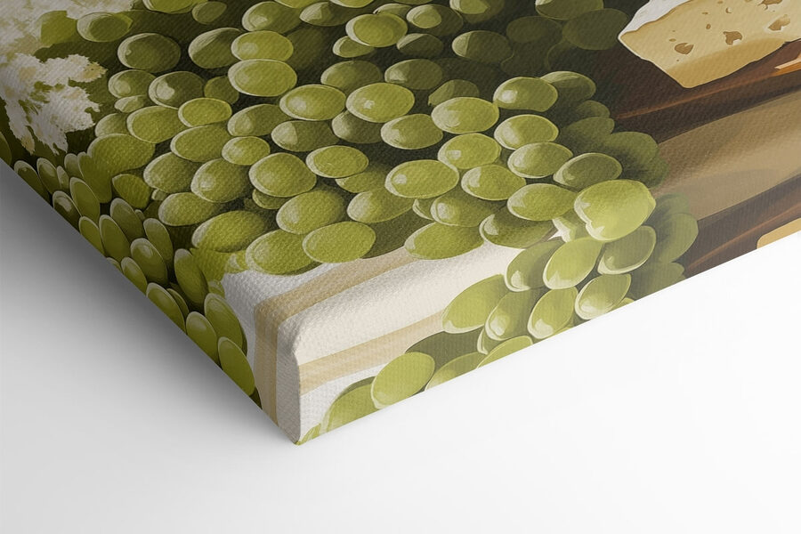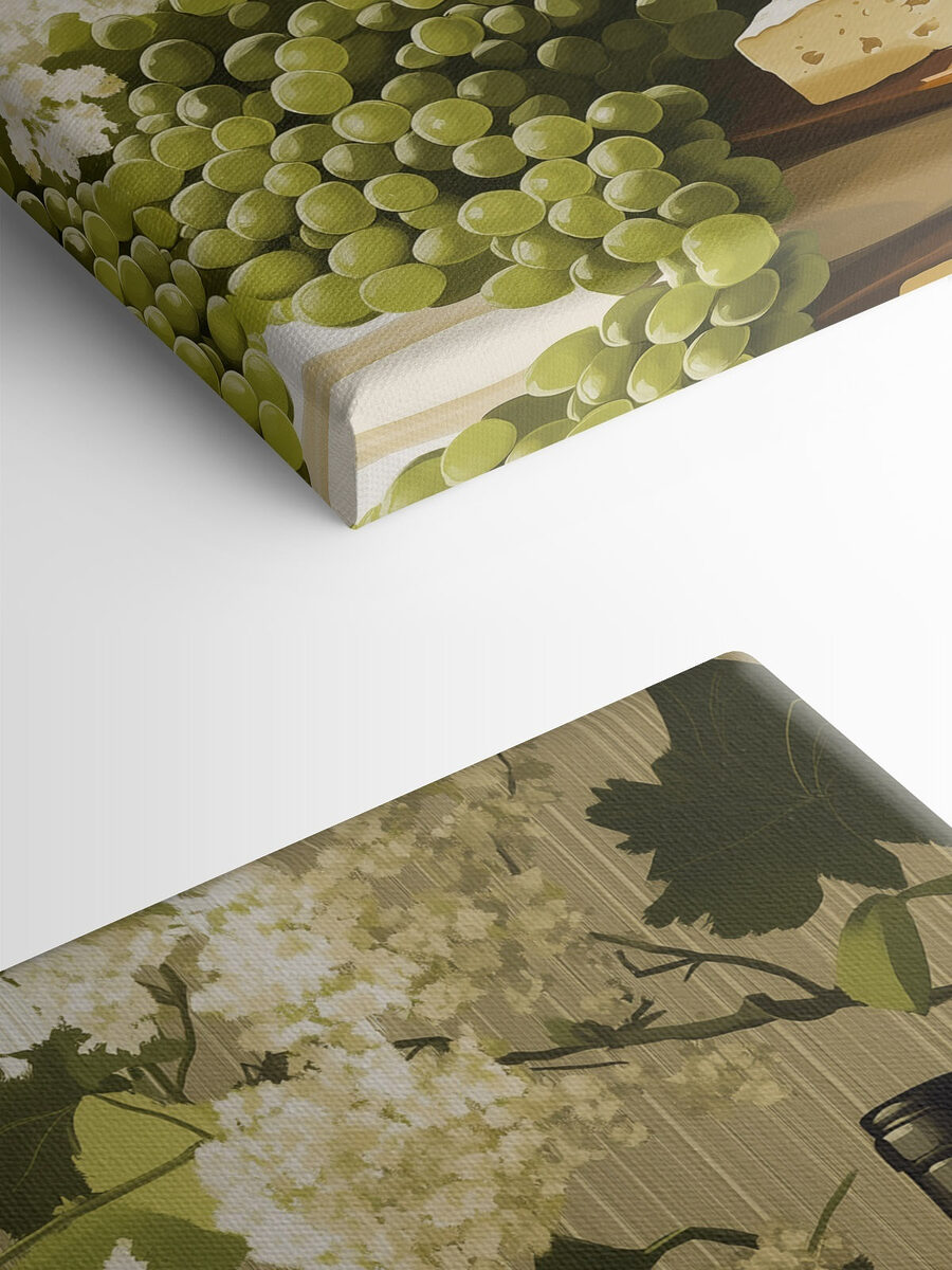 Verwandeln Sie Ihren Raum mit diesem Leinwanddruck, der einen reizvollen Moment einfängt – eine Hand mit einem Glas vollmundigen Rotweins, eine einladende Flasche daneben und einige Trauben, die nur darauf warten, gegessen zu werden. Stellen Sie sich die Gespräche vor, die sich um dieses Kunstwerk herum entwickeln könnten, wenn Freunde zusammenkommen und Gelächter mit dem Klirren von Gläsern vermischt. Der sanfte blumige Hintergrund verleiht dem Bild einen Hauch von Eleganz und macht es perfekt für einen gemütlichen Essbereich oder eine lebhafte Küche. Es erinnert uns jeden Tag daran, die einfachen Freuden des Lebens zu genießen, wie einen faulen Nachmittag mit guten Freunden. Wer würde das nicht gerne erleben?