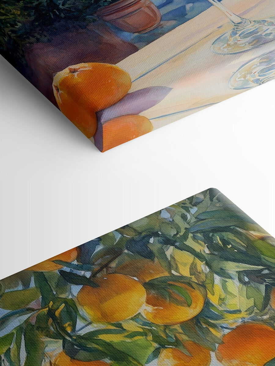 Verschönern Sie jeden Raum mit diesem fröhlichen Leinwanddruck, der ein erfrischendes Glas Orangensaft inmitten frischer Orangen zeigt. Es ist wie ein kleiner Urlaub für Ihre Wand, der jeden an sonnige Nachmittage und gemütliche Brunchs erinnert. Stellen Sie sich vor, Sie nippen an einem kühlen Getränk, die Sonne wärmt Ihr Gesicht, während der spritzige Duft von Orangen in der Luft tanzt. Er sorgt für einen Farbtupfer und ein Stückchen Freude, perfekt für Küchen, Esszimmer oder jene leere Stelle, die nach Charme verlangt. Wer würde dabei nicht lächeln? Bringen Sie ein bisschen Sommer in Ihre Einrichtung, ganz ohne Sonnencreme!