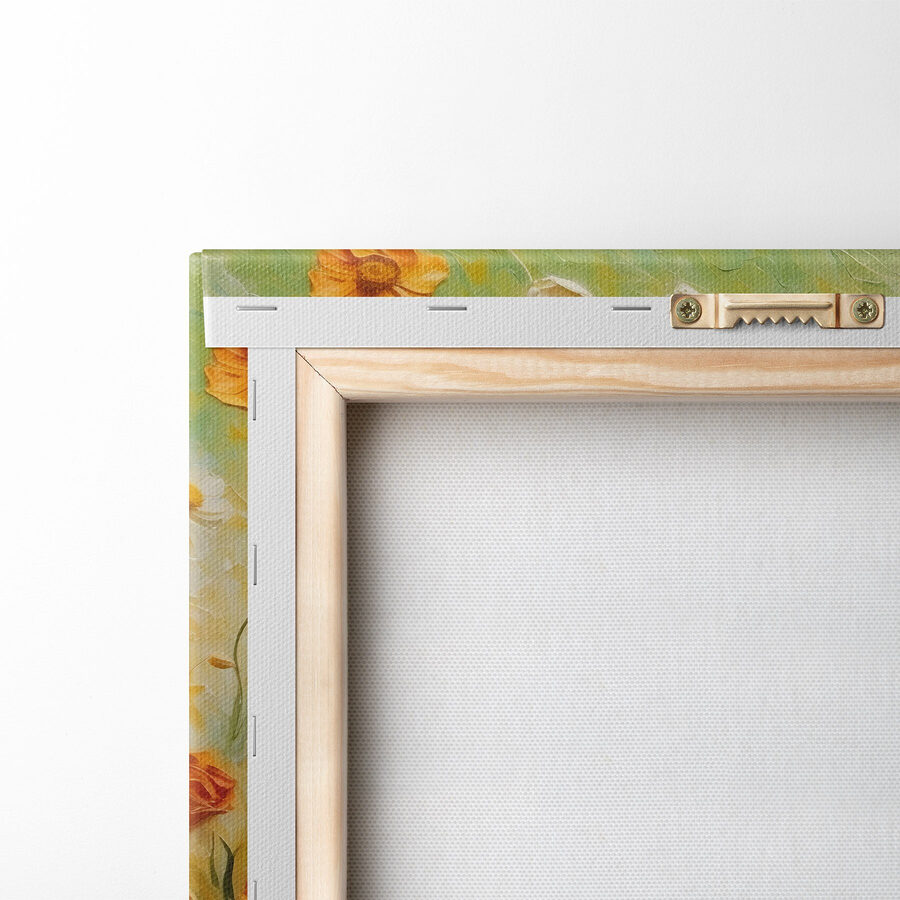 Stellen Sie sich vor, Sie betreten einen Raum und spüren einen Hauch von Wärme, der von einem leuchtenden Blumenfeld ausgeht. Dieser Leinwanddruck bringt diese Szene direkt an Ihre Wände. Lebendige Blüten in Gelb, Orange und Weiß tanzen vor einem verträumten blauen Hintergrund und sind wie ein für immer festgehaltener Ausschnitt der Natur. Perfekt, um eine gemütliche Ecke zu verschönern oder ein mutiges Statement über einer Couch abzugeben. Stellen Sie sich vor, Sie schlürfen einen Kaffee und genießen diese fröhliche Stimmung – wer würde nicht lächeln? Es ist mehr als nur Dekoration; es ist eine tägliche Erinnerung an die Schönheit da draußen, selbst an den trübsten Tagen.