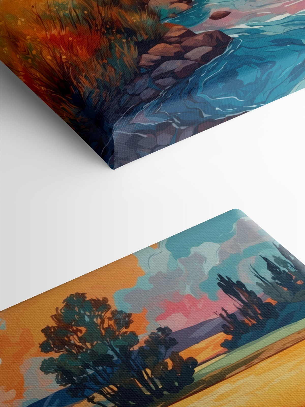 Stellen Sie sich einen sonnenbeschienenen Nachmittag vor, an dem sich ein sanfter Fluss durch Felder mit goldenem Gras schlängelt und den Rahmen für Träume von Sommerabenteuern bildet. Dieser Leinwanddruck bringt diese Ruhe direkt in Ihren Raum. Die leuchtenden Blautöne und warmen Gelbtöne tanzen miteinander und bringen Leben in jede Ecke, die es schmückt. Stellen Sie es sich über einem gemütlichen Sofa oder in einem Flur vor und verbreiten Sie mit jedem Blick ein Gefühl der Ruhe. Es ist wie eine kleine Flucht, die Sie an die Schönheit der Natur erinnert, selbst an hektischen Tagen. Perfekt für alle, die an die Magie des Alltäglichen glauben – dieser Druck lädt zu Tagträumen und einem Lächeln ein.