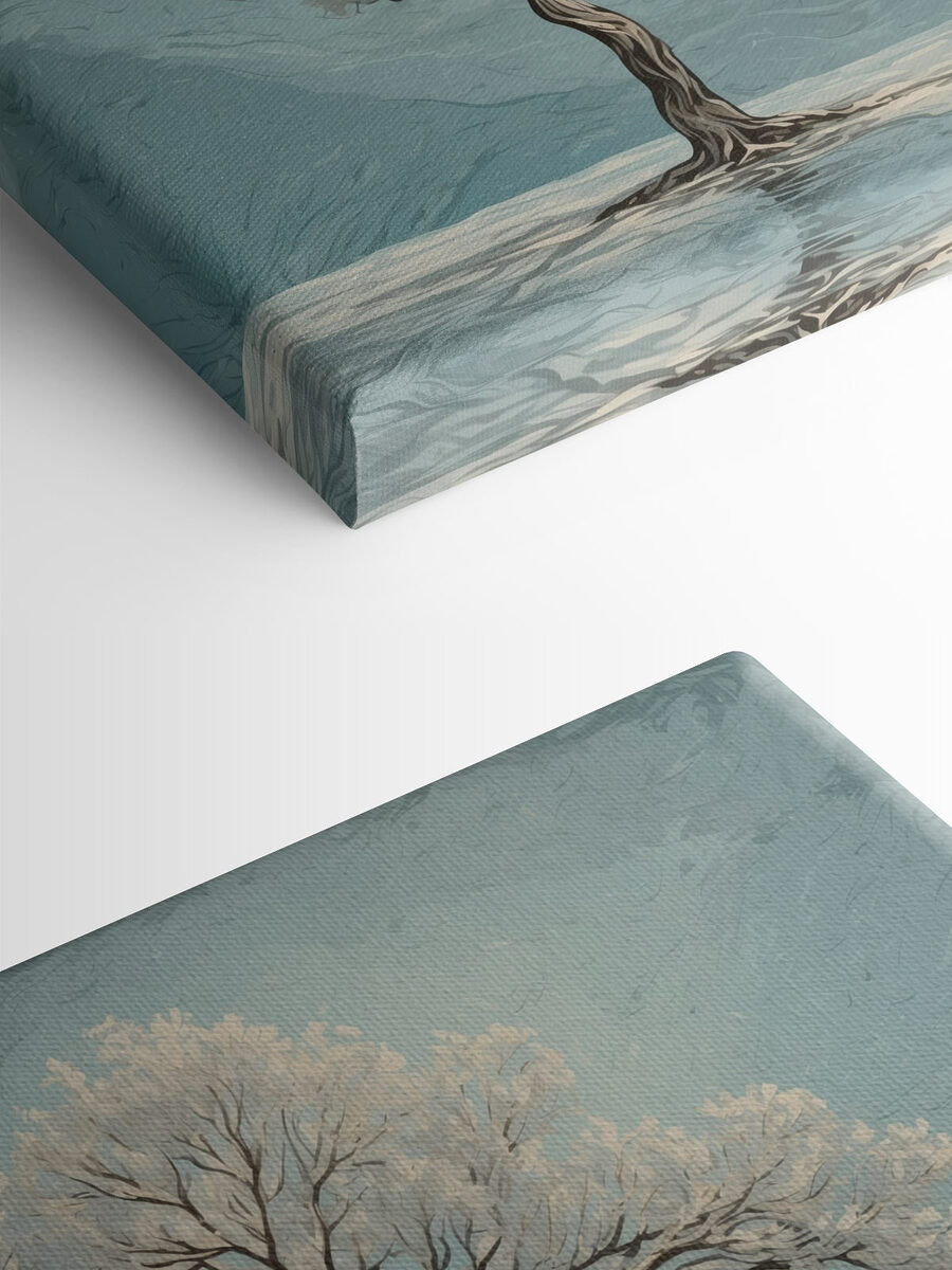 Stellen Sie sich vor, Sie betreten einen Raum und werden von dieser heiteren Szene begrüßt – zwei Bäume stehen anmutig im ruhigen Wasser und flüstern Geschichten von Frieden und Ruhe. Das Kunstwerk spricht diejenigen an, die Schönheit in der Natur finden, und fängt einen Moment ein, der sich wie eine sanfte Umarmung von Mutter Natur selbst anfühlt. Die sanften Farben schaffen eine gemütliche Atmosphäre, die dazu einlädt, es sich mit einem Buch gemütlich zu machen oder einen Kaffee zu trinken und dabei zu träumen. Stellen Sie es sich über einem Sofa oder in einer Leseecke vor; es ist der Gesprächsanlass, der nicht schreit, sondern subtil zu Geschichten und Reflexionen einlädt. Perfekt für alle, die die ruhigen Momente des Lebens zu schätzen wissen.