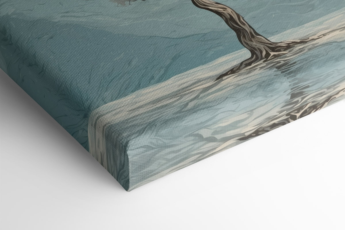 Stellen Sie sich vor, Sie betreten einen Raum und werden von dieser heiteren Szene begrüßt – zwei Bäume stehen anmutig im ruhigen Wasser und flüstern Geschichten von Frieden und Ruhe. Das Kunstwerk spricht diejenigen an, die Schönheit in der Natur finden, und fängt einen Moment ein, der sich wie eine sanfte Umarmung von Mutter Natur selbst anfühlt. Die sanften Farben schaffen eine gemütliche Atmosphäre, die dazu einlädt, es sich mit einem Buch gemütlich zu machen oder einen Kaffee zu trinken und dabei zu träumen. Stellen Sie es sich über einem Sofa oder in einer Leseecke vor; es ist der Gesprächsanlass, der nicht schreit, sondern subtil zu Geschichten und Reflexionen einlädt. Perfekt für alle, die die ruhigen Momente des Lebens zu schätzen wissen.