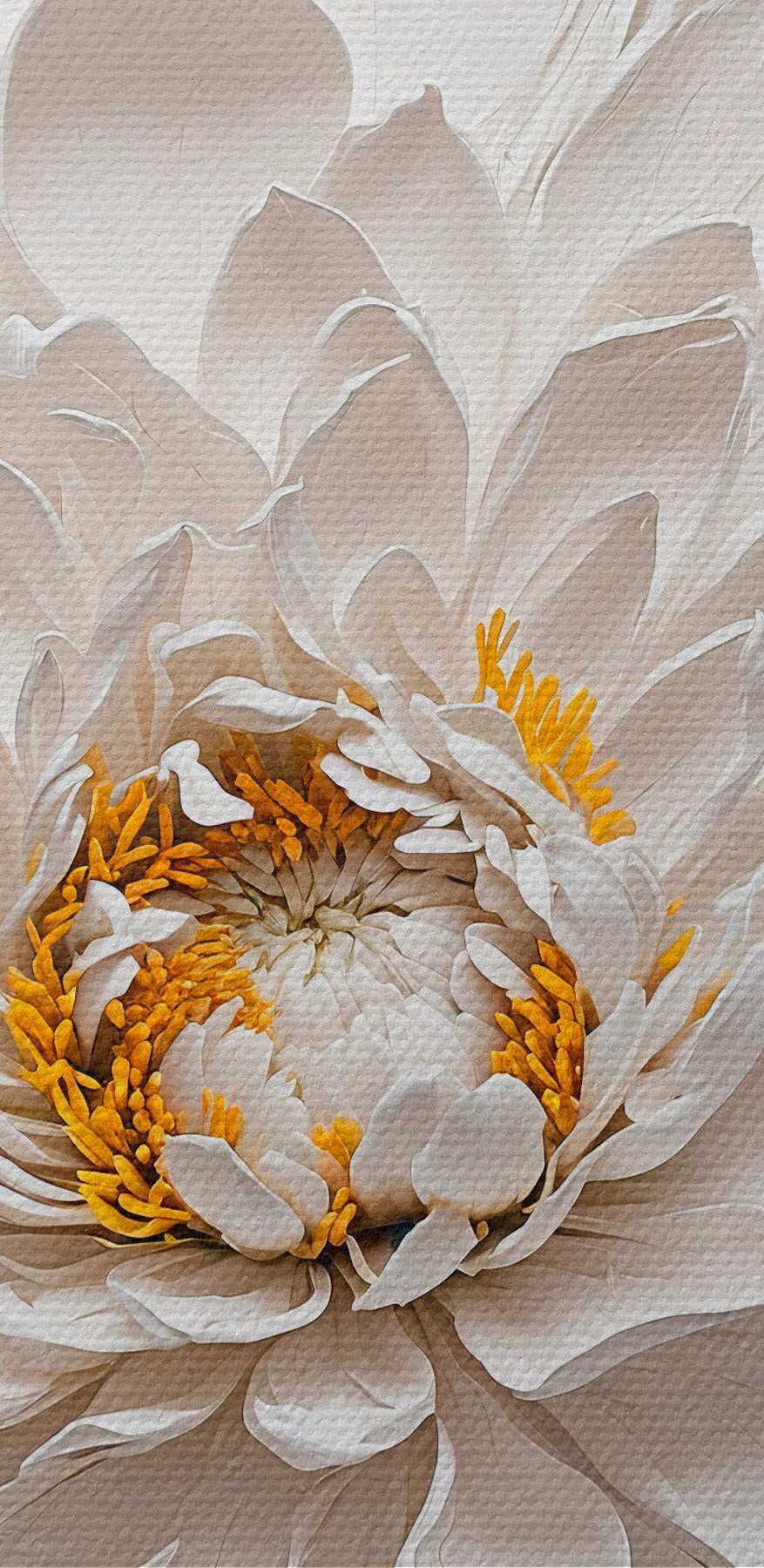 Verwandeln Sie Ihren Raum mit diesem atemberaubenden Leinwanddruck einer weißen Blume mit einer fröhlichen gelben Mitte. Es ist, als würde man sich ein Stück Garten ins Haus holen, ohne sich um das Gießen kümmern zu müssen. Stellen Sie sich vor, wie diese Schönheit Ihr Wohnzimmer erhellt oder einen Hauch von Frieden in Ihr Schlafzimmer bringt. Die übereinander liegenden Blütenblätter vermitteln ein Gefühl der Ruhe und laden zu Tagträumen und gemütlichen Gesprächen bei einem Kaffee ein. Perfekt für Naturliebhaber oder alle, die ihrer Einrichtung einen Hauch von Persönlichkeit verleihen möchten. Ihre Wand wird Ihnen diese elegante Note danken – glauben Sie mir, jeder Raum verdient ein wenig Flower Power!