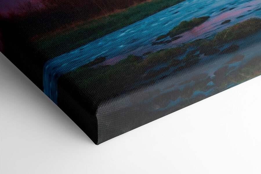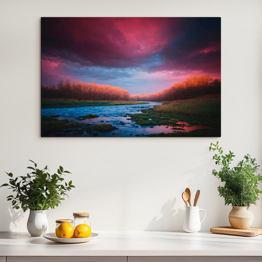 Stellen Sie sich vor, Sie betreten ein gemütliches Zimmer und werden von einem ruhigen Fluss begrüßt, der sich durch einen üppigen Wald schlängelt, genau wie dieser bezaubernde Leinwanddruck. Es ist nicht nur Kunst, es ist eine kleine Flucht. Die sanften Blautöne des Wassers tanzen mit den warmen Farben der Bäume und schaffen eine beruhigende Atmosphäre, die jede Wand in einen friedlichen Rückzugsort verwandeln kann. Perfekt, um sich mit einem Buch einzukuscheln oder an einem Kaffee zu nippen, während man von Abenteuern in der Natur träumt. Wer würde nicht gerne einen Hauch von Wildnis im Haus haben? Es ist, als ob man sich die freie Natur ins Haus holt – abgesehen von den Käfern, versteht sich!