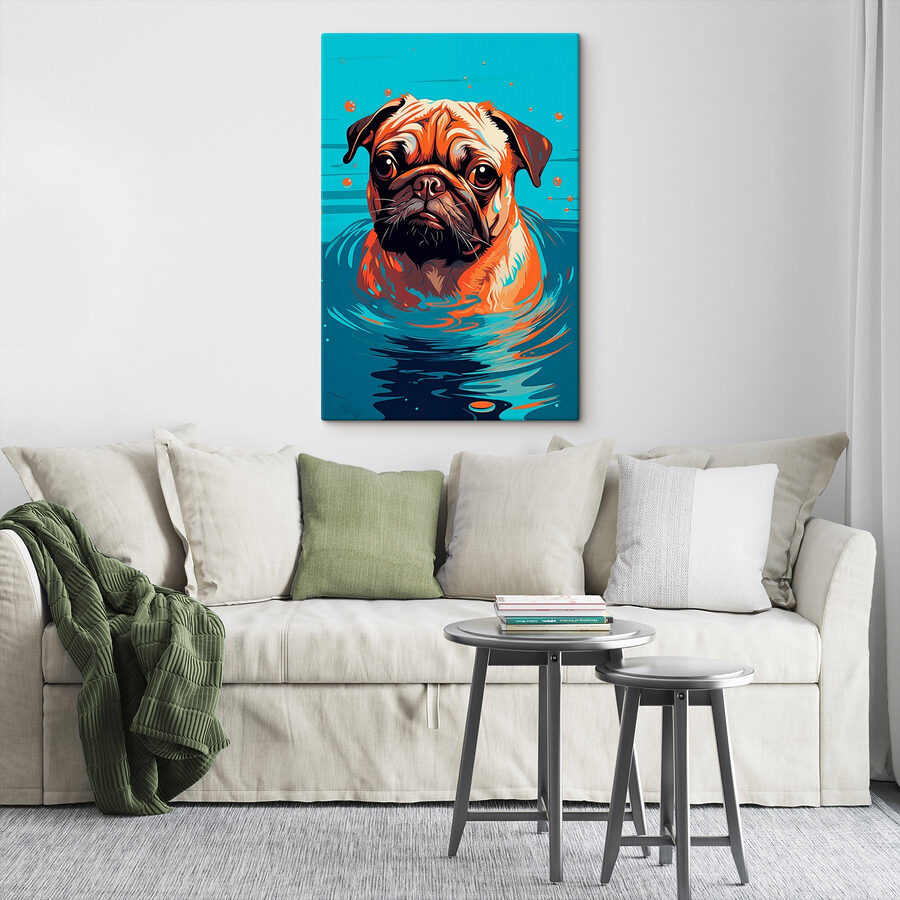 Tauchen Sie ein in einen Spritzer Freude mit diesem bezaubernden Leinwanddruck, auf dem ein Hund durch das Wasser paddelt, umgeben von entzückenden Blasen! Es ist, als würden Sie ein Stück Fantasie direkt in Ihr Wohnzimmer holen. Stellen Sie sich vor, Sie machen es sich mit Ihren Lieblingsfreunden gemütlich, lachen gemeinsam und entdecken diesen Hund, der seinen besten „Ich bin total entspannt”-Blick auflegt – was für ein Gesprächsaufhänger! Die leuchtenden Farben lassen ihn hervorstechen, erhellen jeden Raum und sorgen für einen Hauch von Fröhlichkeit. Perfekt für Hundeliebhaber oder alle, die eine Portion gute Laune brauchen. Dieses Werk strahlt einfach gute Stimmung aus und erinnert uns an unbeschwerte Tage am Wasser. Ob im Schlafzimmer oder im Flur, es zaubert Ihnen garantiert ein Lächeln ins Gesicht und weckt Erinnerungen an Sommertage, an denen Sie im Wasser planschten. Wer möchte nicht, dass sein Zuhause ein bisschen verspielter wirkt?