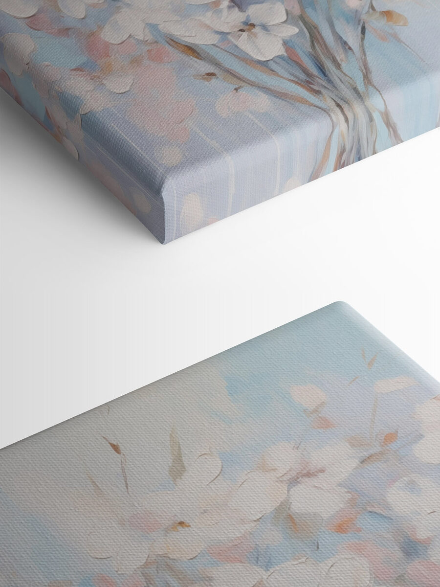 Erhellen Sie jeden Raum mit diesem atemberaubenden Leinwanddruck mit zarten weißen Blumen. Die sanften Blautöne und das zarte Rosa sind wie eine leichte Brise, die sofort die Stimmung eines Raumes hebt. Stellen Sie sich vor, Sie schlürfen Ihren Morgenkaffee, während Sie die friedliche Schönheit der Kunst bewundern, die Ruhe und Gelassenheit in die täglichen Momente einlädt. Es ist, als hätte man einen blühenden Garten direkt an der Wand, nur ohne die lästigen Pollen. Perfekt für alle, die die Natur lieben, aber vielleicht keinen grünen Daumen haben – dieses Kunstwerk bringt die Essenz des Frühlings das ganze Jahr über ins Haus. Es eignet sich perfekt für gemütliche Ecken oder große, leere Wände und ist ein Hauch von Glück, der nur darauf wartet, entdeckt zu werden.