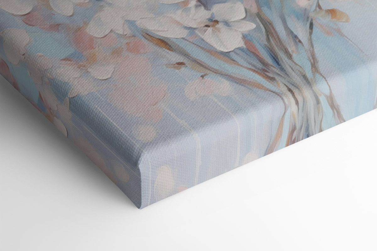 Erhellen Sie jeden Raum mit diesem atemberaubenden Leinwanddruck mit zarten weißen Blumen. Die sanften Blautöne und das zarte Rosa sind wie eine leichte Brise, die sofort die Stimmung eines Raumes hebt. Stellen Sie sich vor, Sie schlürfen Ihren Morgenkaffee, während Sie die friedliche Schönheit der Kunst bewundern, die Ruhe und Gelassenheit in die täglichen Momente einlädt. Es ist, als hätte man einen blühenden Garten direkt an der Wand, nur ohne die lästigen Pollen. Perfekt für alle, die die Natur lieben, aber vielleicht keinen grünen Daumen haben – dieses Kunstwerk bringt die Essenz des Frühlings das ganze Jahr über ins Haus. Es eignet sich perfekt für gemütliche Ecken oder große, leere Wände und ist ein Hauch von Glück, der nur darauf wartet, entdeckt zu werden.
