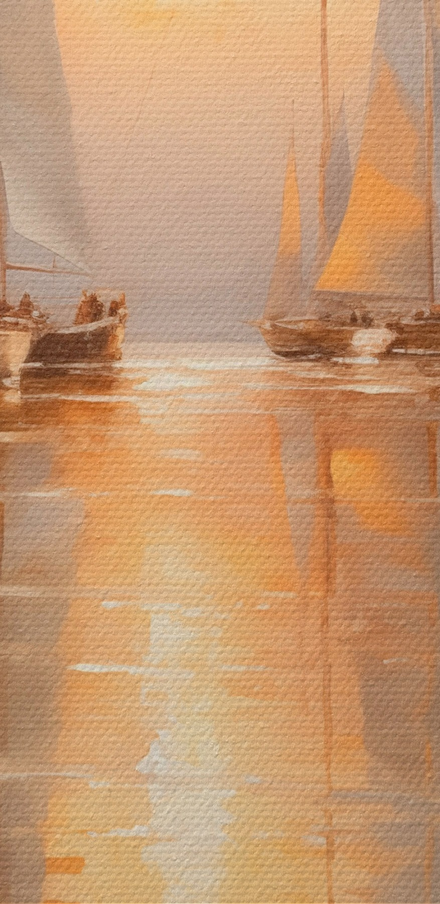 Imagine stepping into a serene world every time you glance at this stunning canvas of sailboats gliding over a calm sea. The gentle hues of sunset splash warmth across the sky, making it feel like a cozy embrace. This piece doesn’t just hang on the wall; it invites lazy afternoons sipping lemonade and daydreaming about far-off shores. Picture guests drifting into your space, taking a moment to soak in the serene vibe. Each glance is a little getaway—perfect for anyone who loves nature and the calm of the ocean. Plus, it might just inspire an unexpected sailing adventure—who knows?