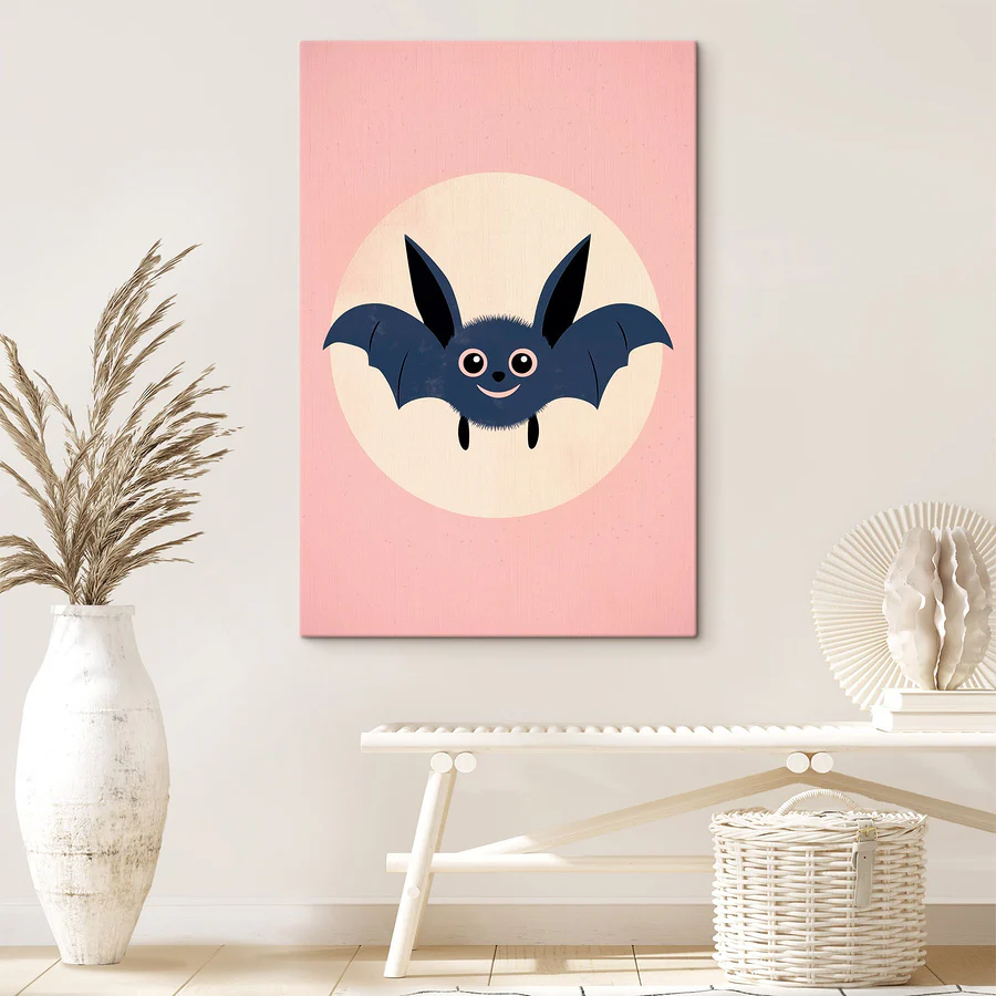 This cheerful bat canvas print adds a splash of whimsy to any room, especially for little ones or those young at heart. With big, friendly eyes and a fluffy charm, it transforms the spooky reputation of bats into something cute and cuddly. Imagine it hanging on a nursery wall—kids will giggle at their new nighttime friend! The soft pink background sets a cozy vibe, making it perfect for bedtime stories or a fun playroom. Who knew a bat could bring so much joy? It’s like inviting a little bit of Halloween magic into everyday life, minus the tricks!