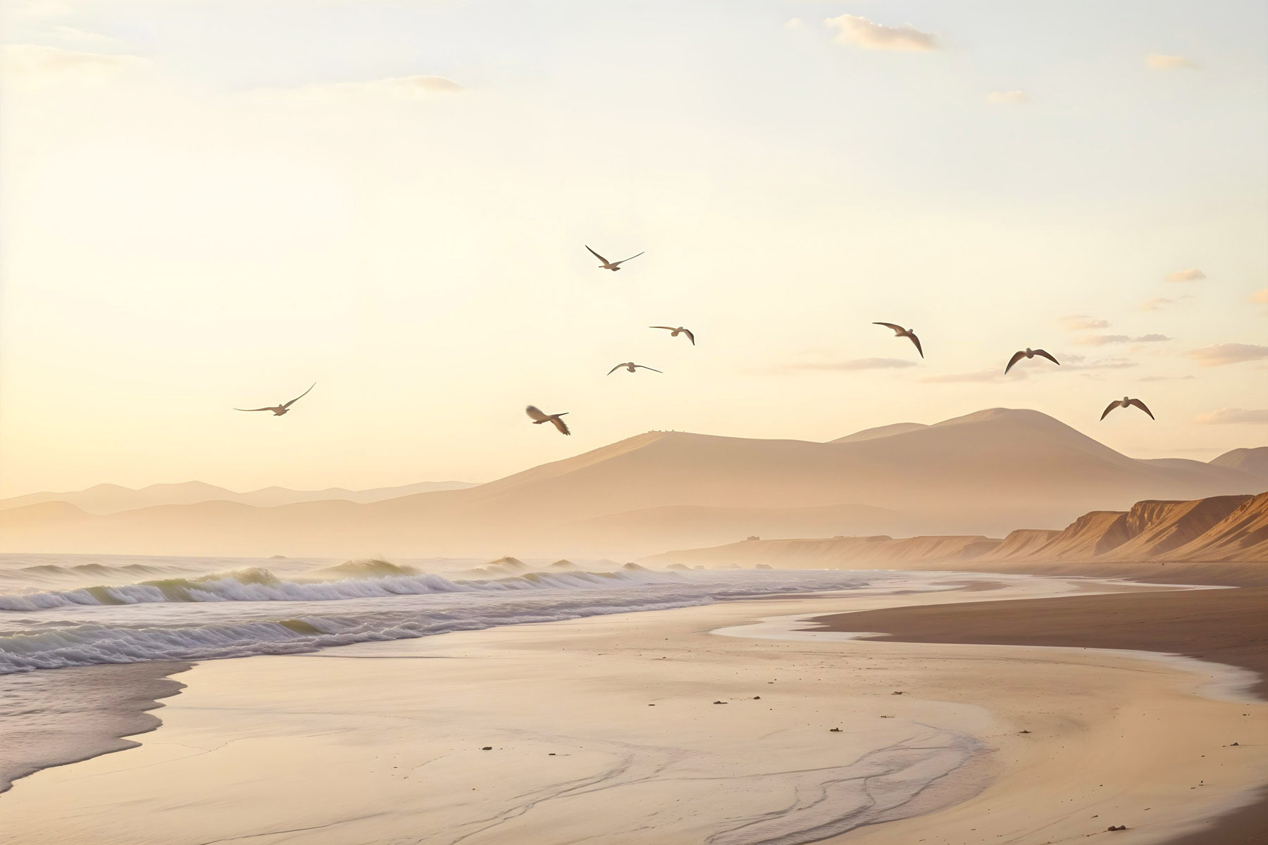 Stellen Sie sich einen ruhigen Strand mit sanften Wellen vor, die das Ufer küssen, während über Ihnen ein Vogelschwarm vor einem sanften, pastellfarbenen Himmel schwebt. Dieser Leinwanddruck “Birds Flying Over a Beach” fängt diesen verträumten Moment perfekt ein. Jedes Mal, wenn es ins Auge fällt, ist es wie ein Mini-Urlaub. Stellen Sie sich vor, wie diese Schönheit einen Wohnraum erhellt oder einer gemütlichen Ecke eine ruhige Ausstrahlung verleiht. Sie lädt zu Tagträumen von sandigen Zehen und salzigen Brisen ein. Ob für das eigene Heim oder als Geschenk, dieses Stück vermittelt Entspannung und Liebe zur Natur. Wer würde das nicht wollen?