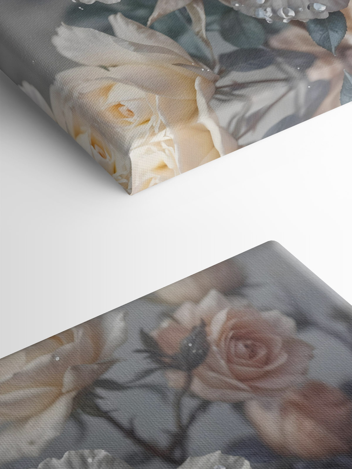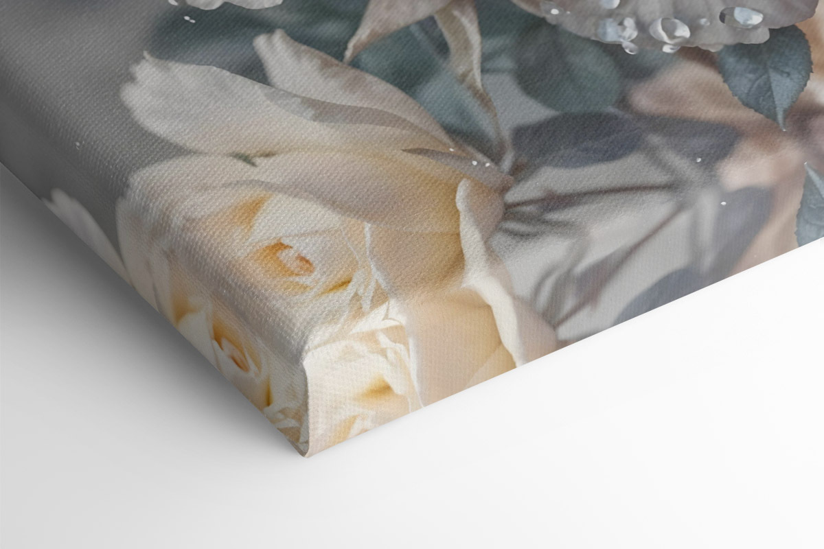 Transform your wall into a serene garden with this lovely canvas print featuring a group of white roses adorned with glistening water drops. It’s like having a fresh bouquet—without the constant upkeep! Imagine sitting in your favorite chair, a cup of coffee in hand, and feeling the calm that these soft petals bring. The subtle colors invite tranquility, making any space feel a touch more inviting. Perfect for the living room or a cozy nook, this artwork whispers charm and elegance. Who wouldn’t smile at such delicate beauty? Perfect for flower lovers or anyone needing a little floral cheer.