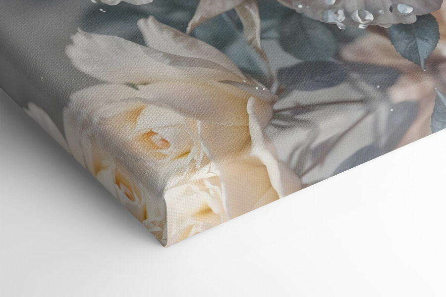 Verwandeln Sie Ihre Wand in einen ruhigen Garten mit diesem schönen Leinwanddruck, der eine Gruppe weißer Rosen zeigt, die mit glitzernden Wassertropfen verziert sind. Es ist, als hätte man einen frischen Blumenstrauß – ohne die ständige Pflege! Stellen Sie sich vor, Sie sitzen in Ihrem Lieblingssessel, eine Tasse Kaffee in der Hand, und spüren die Ruhe, die diese zarten Blütenblätter ausstrahlen. Die dezenten Farben strahlen Ruhe aus und machen jeden Raum ein wenig einladender. Dieses Kunstwerk eignet sich perfekt für das Wohnzimmer oder eine gemütliche Ecke und versprüht Charme und Eleganz. Wer würde bei solch zarter Schönheit nicht lächeln? Perfekt für Blumenliebhaber oder alle, die ein wenig florale Fröhlichkeit brauchen.
