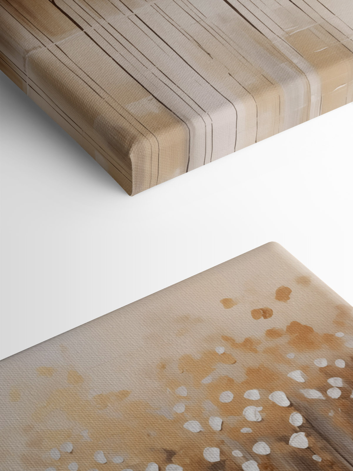 Verwandeln Sie eine schlichte Wand mit dem Leinwanddruck “Soft Trees in Muted Tones” in einen ruhigen Ort. Stellen Sie sich vor, Sie betreten einen verträumten Wald, in dem sanfte, warme Töne zwischen weichen Bäumen tanzen. Die erdige Farbpalette lädt zum Entspannen ein und eignet sich daher perfekt für ein gemütliches Wohnzimmer oder ein ruhiges Schlafzimmer. Stellen Sie sich vor, Sie machen es sich mit einem guten Buch gemütlich, und das Kunstwerk unterstreicht Ihre Stimmung. Es ist, als ob man sich die Natur ins Haus holt, nur ohne die lästigen Käfer. Dieses Kunstwerk dekoriert nicht nur, es lädt auch zur Ruhe ein und verleiht dem Alltag einen ganz besonderen Charakter.