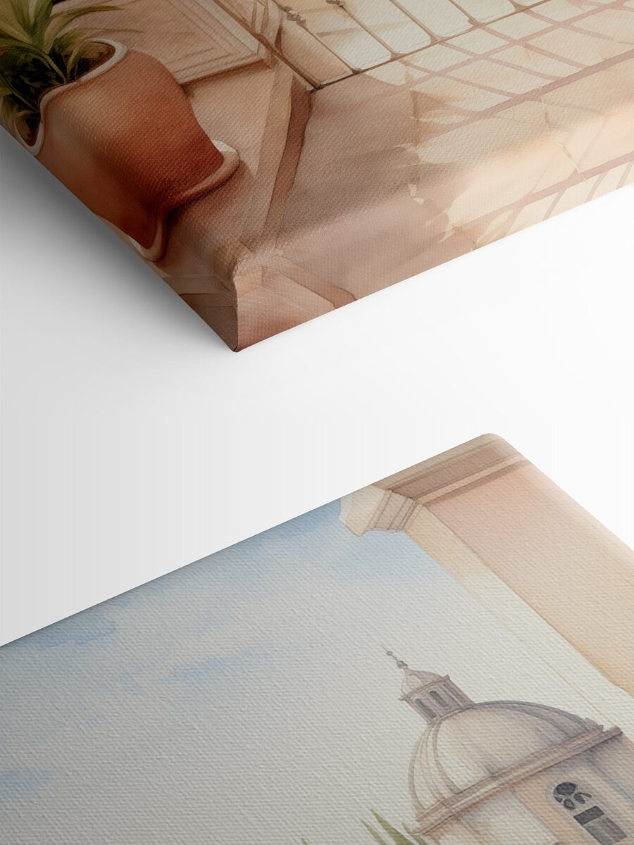 Verwandeln Sie eine leere Wand in einen verträumten Rückzugsort mit diesem Aquarellbild für den Balkon. Stellen Sie sich vor, Sie schlürfen Ihren Morgenkaffee und blicken dabei auf die Dächer der Stadt und die leuchtenden Blüten. Es ist, als ob Sie sich ein Stück eines sonnenbeschienenen italienischen Balkons direkt nach Hause holen würden. Von den sanften Farbtönen bis zu den lebendigen Pflanzen, jedes Detail vermittelt ein Gefühl der Ruhe und Gelassenheit. Es ist perfekt für eine gemütliche Ecke oder ein lebendiges Wohnzimmer. Und wer würde nicht gerne ein wenig von Reisen und Sonnenschein träumen? Dieses Stück ist nicht nur Kunst, sondern eine Einladung zum Entspannen und Erholen, die jeden Tag ein bisschen schöner macht.