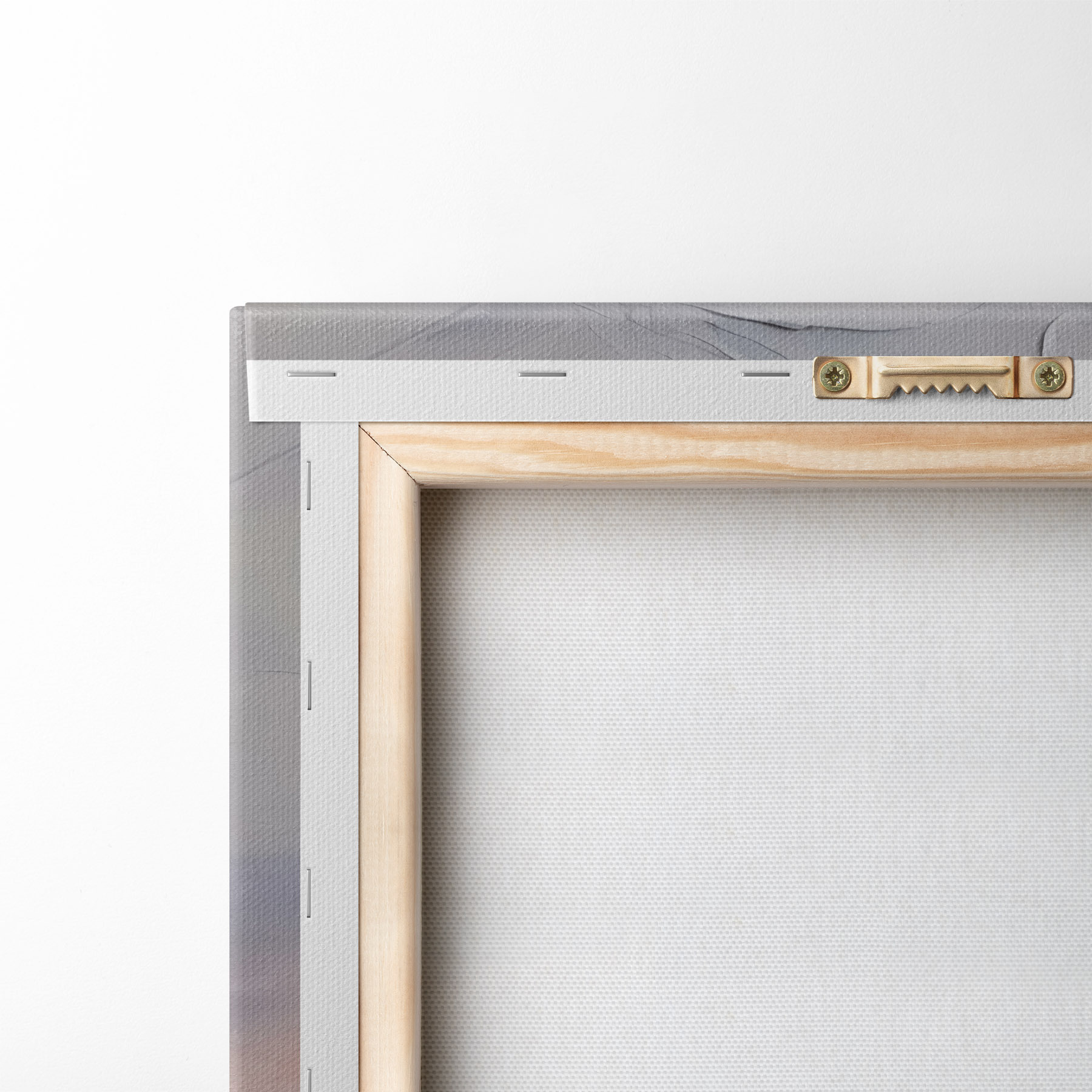 Verwandeln Sie jeden Raum in einen ruhigen Zufluchtsort mit diesem bezaubernden Leinwanddruck einer Bergkette. Stellen Sie sich vor, wie Sie es sich mit einem heißen Getränk gemütlich machen und auf diese sanften, pastellfarbenen Gipfel blicken, die irgendwie großartig und beruhigend zugleich wirken. Es ist, als hätte man ein Stückchen Natur direkt an der Wand, das einem süße Töne von Abenteuer und Ruhe zuflüstert. Die sanften Farbtöne erinnern an die magischen Momente in der Morgendämmerung, wenn sich die Welt wieder neu anfühlt. Perfekt, um eine entspannte Atmosphäre in einem Wohnzimmer zu schaffen oder einem Schlafzimmer Charakter zu verleihen. Dieses Stück regt zu Tagträumen und Gesprächen an – stellen Sie nur sicher, dass Sie einen bequemen Stuhl in der Nähe haben.