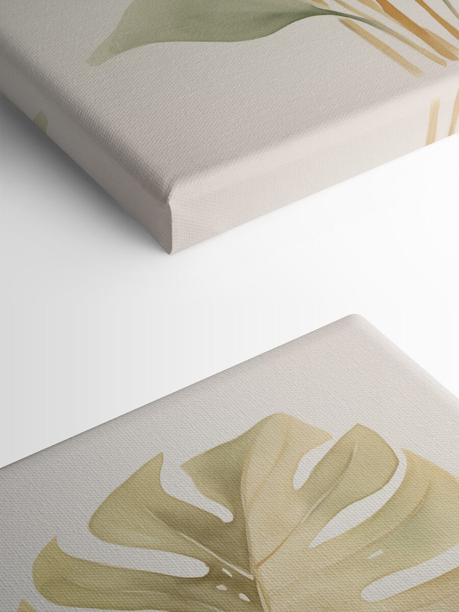 Bringen Sie einen Hauch von frischer Luft in jeden Raum mit diesem atemberaubenden Leinwanddruck, der eine Gruppe leuchtender Blätter vor einem beruhigenden weißen Hintergrund zeigt. Es ist, als hätte man einen kleinen tropischen Urlaub zu Hause, nur ohne Sand in den Schuhen. Stellen Sie sich vor, Sie wachen mit diesem Charme auf und werden täglich daran erinnert, dass die Schönheit der Natur Ihren Raum und Ihre Stimmung aufhellen kann. Die sanften Grüntöne und subtilen Nuancen vermitteln ein Gefühl der Ruhe und eignen sich perfekt, um eine gemütliche Leseecke einzurichten oder eine einsame Wand zu verschönern. Ihre Freunde könnten denken, Sie hätten Ihr Wochenende im botanischen Garten verbracht. Wer braucht schon Urlaub, wenn die Wände ins Paradies entführen können?