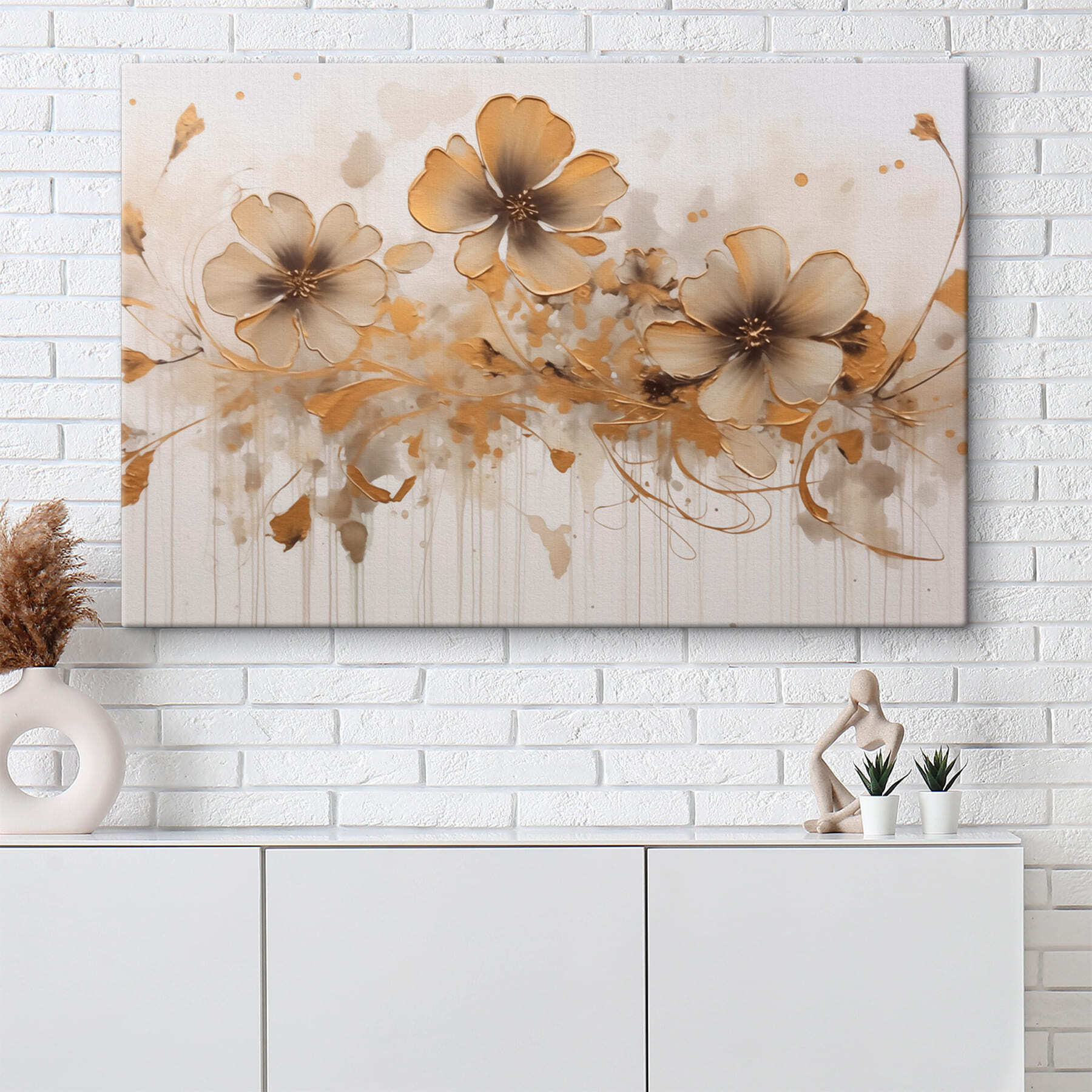 Verschönern Sie jeden Raum mit diesem atemberaubenden Leinwanddruck “Florale Abstraktion mit eleganten Strichen”. Stellen Sie sich diese warmen, einladenden Blumen vor, gepaart mit einem Hauch von künstlerischem Flair. Die sanften Farben und fließenden Linien harmonieren wunderbar, wie eine sanfte Brise, die durch einen Garten weht. Jedes Mal, wenn Sie es betrachten, haben Sie das Gefühl, durch eine friedliche Wiese zu spazieren. Es eignet sich perfekt für Wohn- und Schlafzimmer oder sogar für eine kleine Ecke, die einen Hauch von Charme braucht. Holen Sie sich ein Stück Natur ins Haus, wo Schönheit auf Stil trifft!
