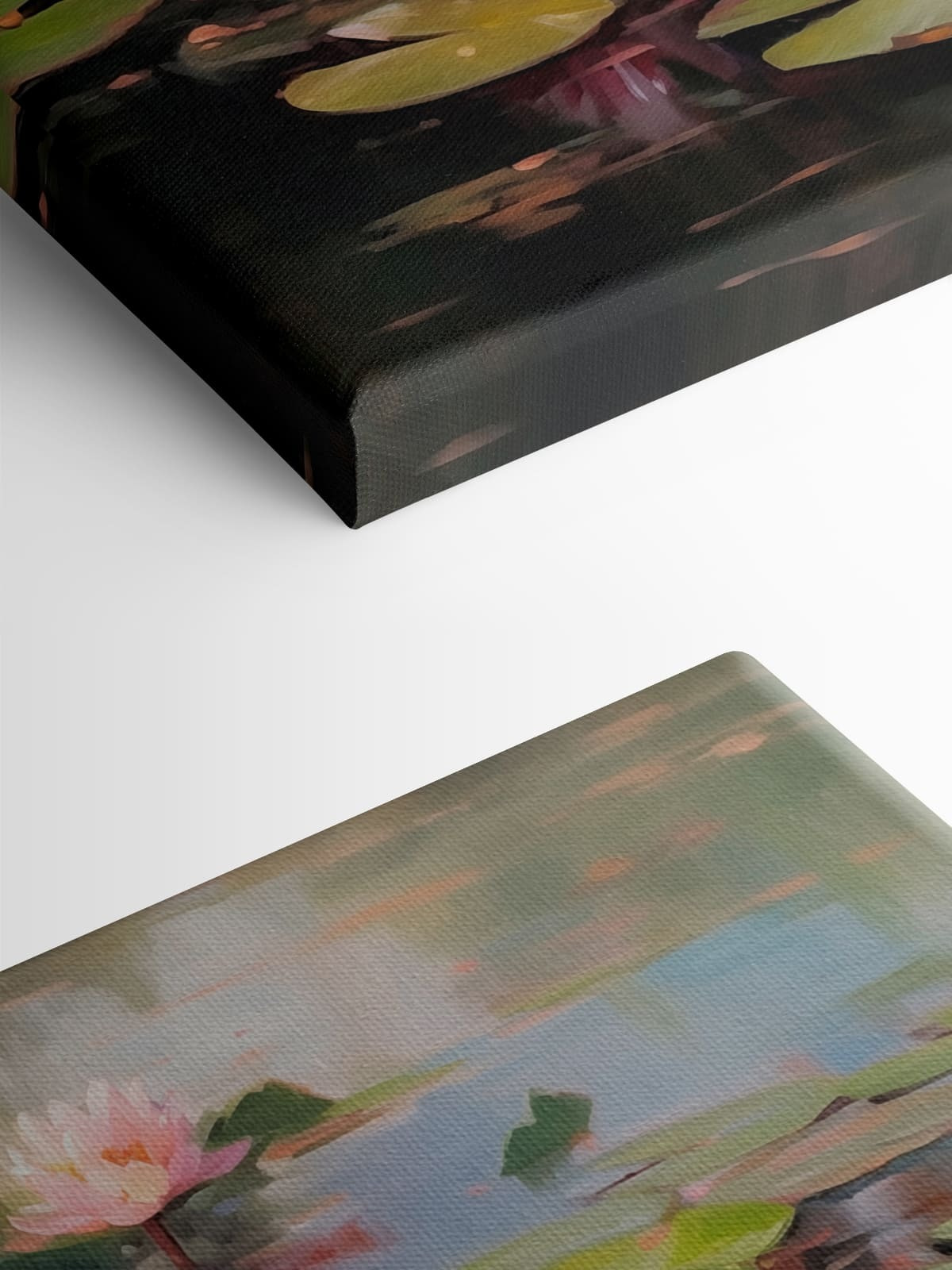 Tauchen Sie mit diesem bezaubernden Leinwandbild, das rosa Blumen auf Seerosenblättern zeigt, in eine heitere Welt ein. Es flüstert Geschichten von ruhigen Nachmittagen, an denen die Natur in sanften Wellen tanzt und das Sonnenlicht durch die Blätter flimmert. Stellen Sie sich vor, wie dieses Bild Ihre Wand schmückt und sofort eine gemütliche Atmosphäre schafft – perfekt, um zu träumen oder an einer warmen Tasse Tee zu nippen. Jeder Blick lädt zu einem Moment der Ruhe ein, so dass es schwer fällt, sich eine kleine Auszeit zu gönnen, um die Schönheit zu genießen. Es ist, als ob Sie sich ein Stück friedliches Teichleben direkt nach Hause holen!