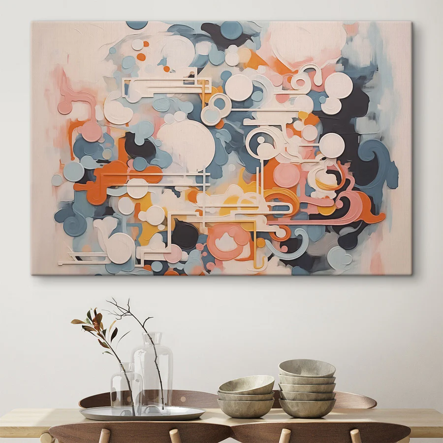 Verwandeln Sie Ihren Raum mit einem lebendigen Leinwandbild, das vor Energie strotzt! Dieses farbenfrohe Kunstwerk mit seinen verspielten weißen Linien und Kreisen wirkt wie ein fröhlicher Tanz der Formen, der nur darauf wartet, Ihre Wände zu verschönern. Stellen Sie sich vor, es in einer gemütlichen Ecke aufzuhängen, wo es in ruhigen Morgenstunden oder bei geselligen Zusammenkünften einen Funken Kreativität versprüht. Jeder Blick könnte zu Tagträumen oder vielleicht sogar zu einer kleinen Tanzparty im Wohnzimmer inspirieren. Dieses Kunstwerk ist nicht nur ein Druck, sondern auch ein Gesprächsanlass und ein Stimmungsaufheller, der jeden Raum ein bisschen mehr zu dir macht.