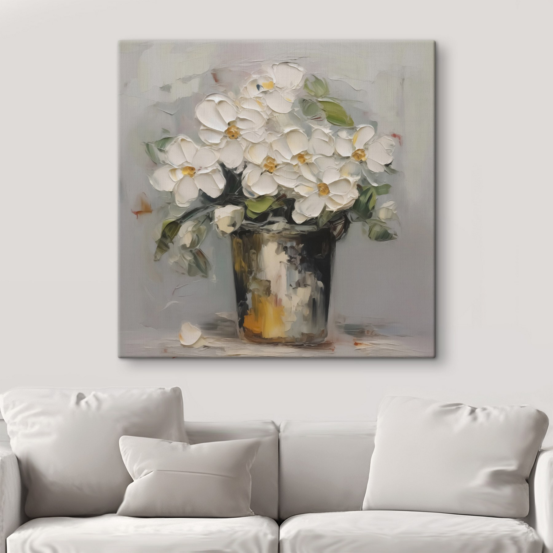 Verschönern Sie Ihren Raum mit diesem reizenden Leinwanddruck von Blumen in einem Eimer. Stellen Sie sich vor, Sie gehen vorbei und bekommen einen Hauch von Frühling, egal zu welcher Jahreszeit. Die fröhlichen Blüten, kühn und doch zart, tanzen förmlich auf der Leinwand. Dieses Kunstwerk ist perfekt für die Tage, an denen ein bisschen Natur die Stimmung hebt, und verleiht jedem Raum einen Hauch von Wärme und Laune. Es ist, als ob man sich einen Garten ins Haus holt – kein Gießen erforderlich! Stellen Sie es in Ihr Wohnzimmer oder in eine gemütliche Ecke und lassen Sie sich von der guten Stimmung anstecken. Denn wer liebt nicht ein wenig blumige Fröhlichkeit?