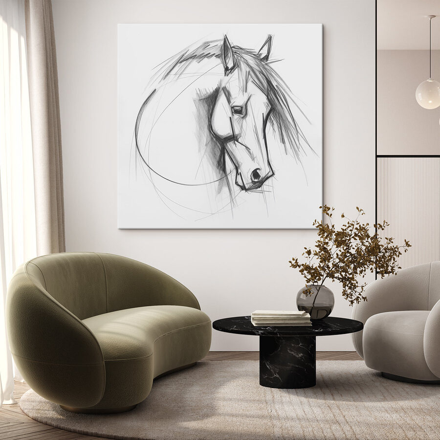 Verwandeln Sie Ihren Raum mit diesem atemberaubenden Leinwanddruck, der ein wunderschön gezeichnetes Pferd zeigt. Es ist nicht nur Kunst, es ist ein Statement. Die sanften Linien und anmutigen Kurven rufen ein Gefühl der Freiheit hervor, das viele Pferdeliebhaber tief in ihrem Herzen spüren werden. Stellen Sie sich vor, es hängt über Ihrer Couch, regt zu Gesprächen an oder erinnert Sie einfach an friedliche Momente im Freien. Das schwarz-weiße Design fügt sich mühelos in jeden Einrichtungsstil ein und verleiht ihm einen Hauch von Eleganz, während es gleichzeitig erfrischend einfach gehalten ist. Perfekt für alle, die die Schönheit der Natur und der Kunst zu schätzen wissen, könnte dieses Stück das neue Herzstück sein, über das jeder spricht.