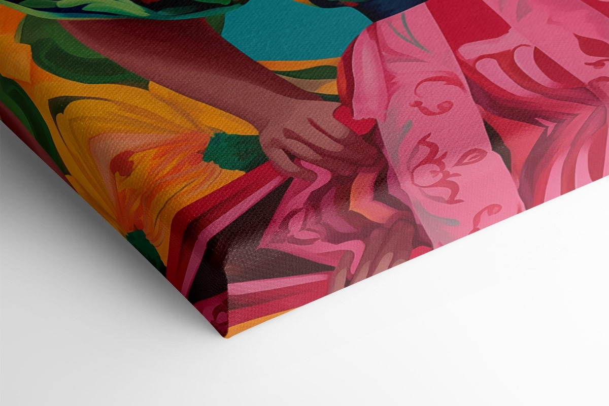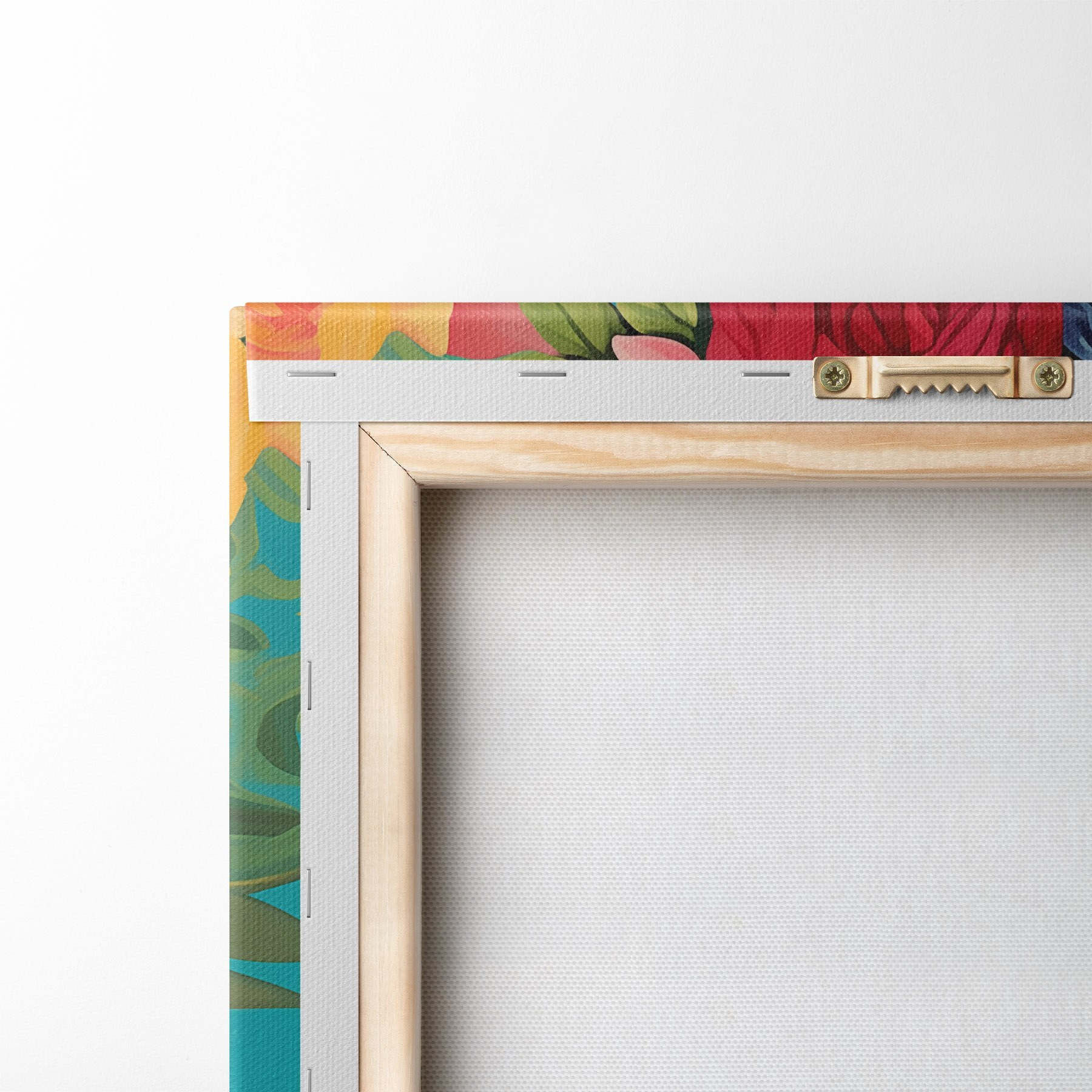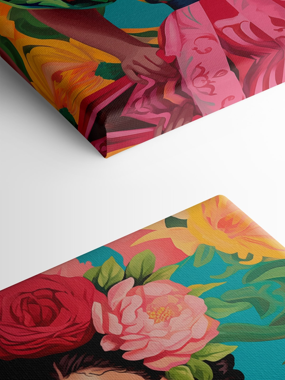Dieser atemberaubende Leinwanddruck mit einer Frau in einem farbenfrohen, blumengeschmückten Kleid und einem lebhaften Blumenstrauß im Haar bringt jeden Raum zum Strahlen. Stellen Sie sich vor, es hängt in einer gemütlichen Ecke und bringt einen Hauch von Natur ins Haus. Es ist wie eine Gartenparty direkt an der Wand, die jedes Mal ein Lächeln hervorruft, wenn jemand vorbeikommt. Perfekt für alle, die einzigartige Dekoration lieben, fängt dieses Stück die Essenz von Freude und Festlichkeit ein. Lassen Sie sich zu Tagträumen von sonnenbeschienenen Tagen und warmen Brisen inspirieren und verwandeln Sie Ihren Raum in einen fröhlichen Zufluchtsort. Wer würde sich diese Art von Atmosphäre nicht wünschen?