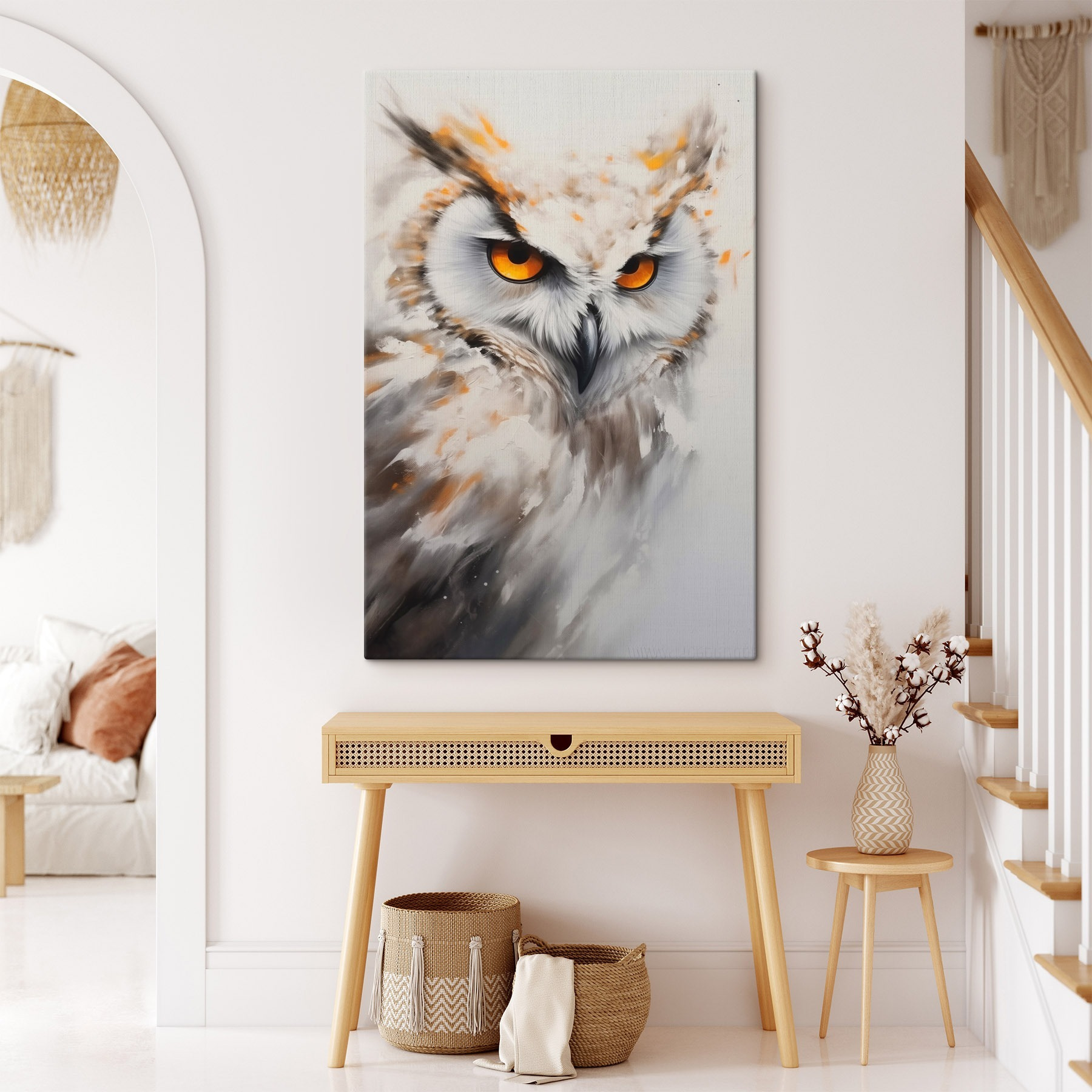 Lernen Sie die fesselndste weise alte Eule kennen, deren Augen wahrscheinlich durch Sie hindurchsehen können. Dieser Leinwanddruck fängt ihren atemberaubenden Blick ein und verwandelt jede Wand in einen künstlerischen Gesprächsanlass. Stellen Sie sich vor, Sie betreten einen Raum und werden von diesem gefiederten Freund begrüßt, der die Dinge im Auge behält und gleichzeitig einen Hauch von natürlichem Charme versprüht. Egal, ob er über einer gemütlichen Leseecke hängt oder ein Büro aufpeppt, er bringt ein bisschen Wildheit ins Haus. Perfekt für Tierliebhaber, Kunstbegeisterte oder alle, die einen Hauch von Geheimnis in ihrem Leben brauchen. Stellen Sie es sich vor: ein ruhiger Abend, eine Tasse Tee und die Eule, die Ihnen Gesellschaft leistet. Ist das nicht eine tolle Stimmung?