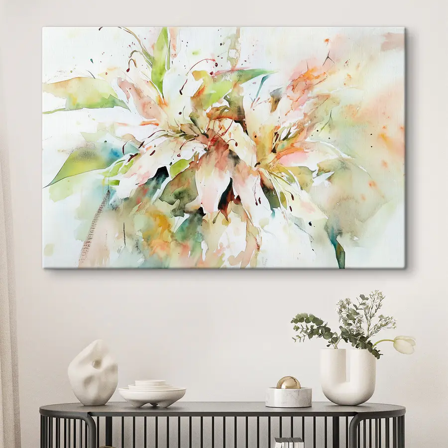 Mit diesem farbenfrohen Leinwandbild mit tanzenden Blumen auf einem zarten weißen Hintergrund bringen Sie Freude in jeden Raum. Es ist, als würde man den Garten ins Haus holen, ohne Pollen und lästige Insekten. Stellen Sie sich vor: ein heller Morgen, das Sonnenlicht strömt durch das Fenster, und diese blühenden Schönheiten erhellen den Raum. Es ist das perfekte Stück, um die Stimmung bei einem gemütlichen Beisammensein aufzuhellen oder einfach eine leere Wand zu verschönern. Die Farben mischen sich so schön, dass sie geradezu Geschichten von Frühlingsabenteuern flüstern. Verwandeln Sie Ihr Zuhause in einen fröhlichen Rückzugsort mit einem Hauch von Natur!