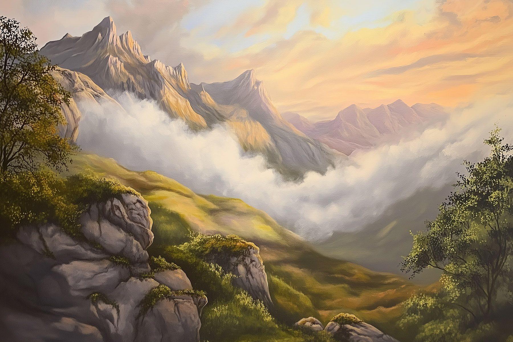 Bringen Sie die ruhige Schönheit der Natur in Ihren Raum mit diesem atemberaubenden Leinwanddruck mit majestätischen Bergen und flauschigen Wolken. Stellen Sie sich vor: Sie machen es sich in einer gemütlichen Ecke gemütlich, mit einer warmen Tasse Tee in der Hand, und betrachten diese sanften Riesen, die alte Geschichten zu flüstern scheinen. Es ist wie eine kleine Flucht in die freie Natur, ohne dass man dafür Wanderschuhe braucht. Die sanften Farben erhellen jeden Raum und machen es zu einer perfekten Kulisse für nachdenkliche Momente oder lebhafte Zusammenkünfte. Dieses Kunstwerk hängt nicht nur an der Wand, sondern bringt ein Stück Frieden in den Alltag. Perfekt für Naturliebhaber oder alle, die einfach nur einen Hauch von frischer Luft zu Hause brauchen.