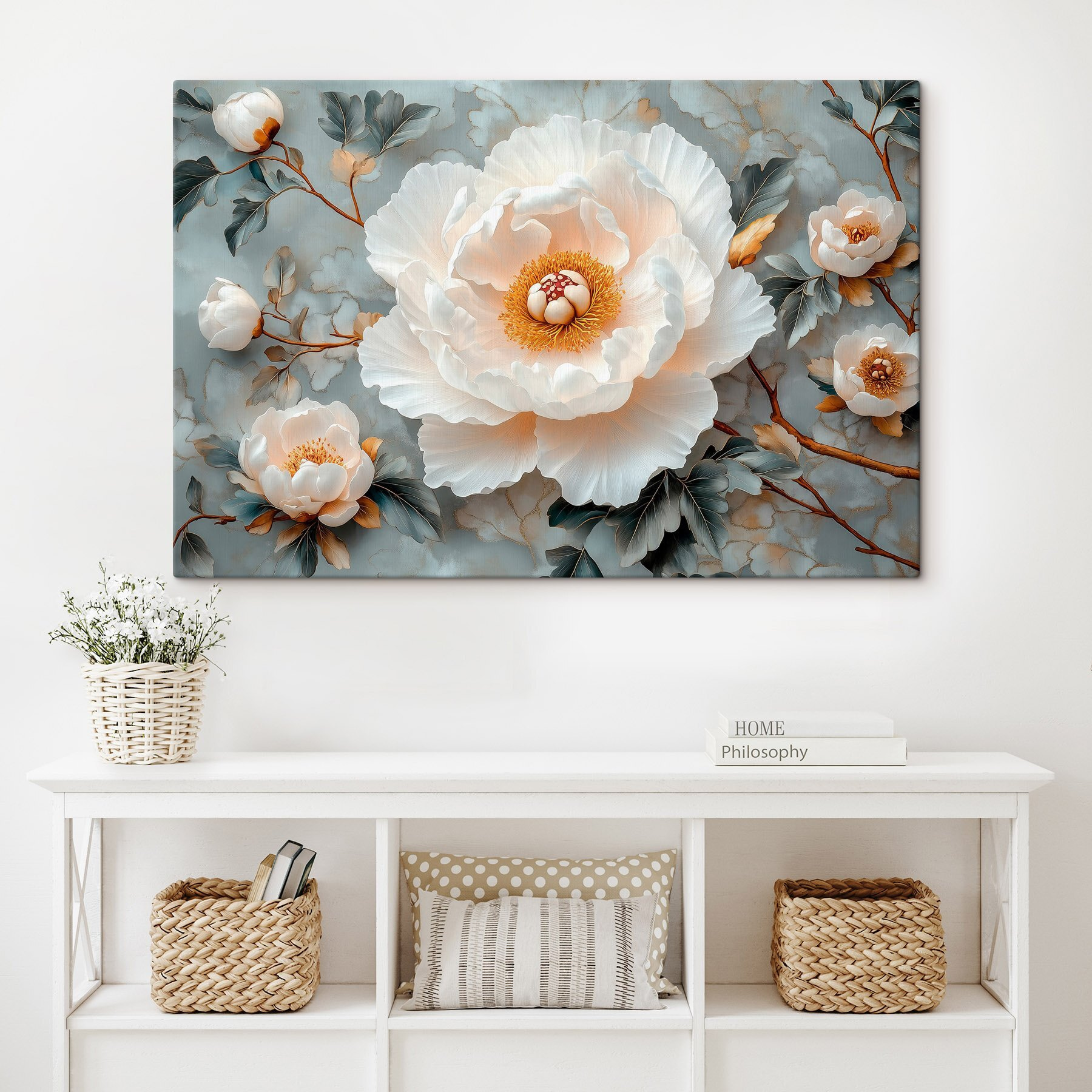 Erhellen Sie Ihren Raum mit diesem bezaubernden Leinwanddruck, der eine wunderschöne weiße Blume mit einer fröhlichen gelben Mitte zeigt. Es ist eines der Stücke, die Ihnen sofort das Gefühl geben, dass der Frühling ausgebrochen ist, selbst wenn es mitten im Winter ist. Stellen Sie sich vor, Sie schauen es beim Morgenkaffee an und spüren die Wärme, die sich wie eine kuschelige Decke über Sie legt. Die filigranen Details und die sanften Farbtöne bringen einen Hauch von Natur ins Haus und machen es zu einem perfekten Accessoire für jeden Raum. Es ist, als hätte man ein kleines Stück Garten, nur ohne die Pollen – toll! Dieses Kunstwerk ist perfekt, um ein wenig Fröhlichkeit zu verbreiten und lädt Freunde zum Lächeln und zu Komplimenten ein.