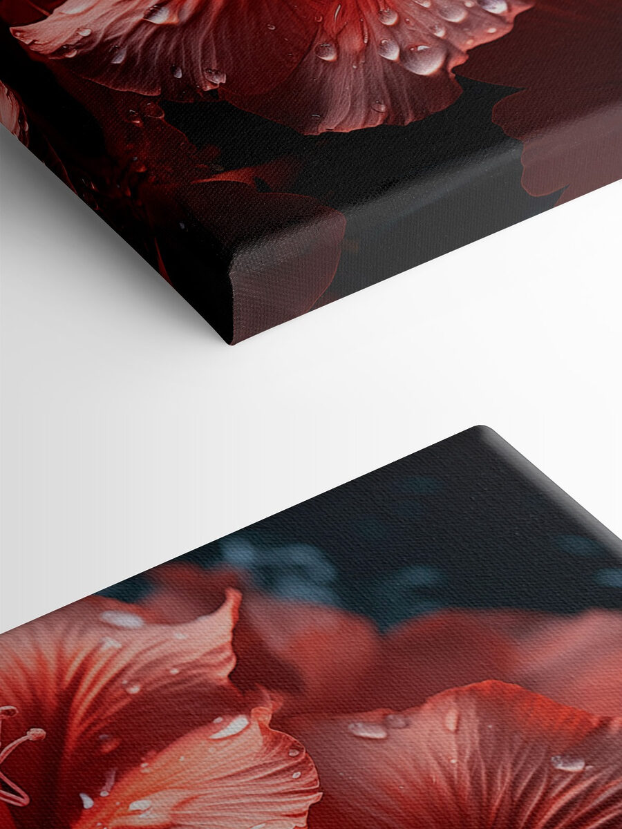 Dieser atemberaubende Leinwanddruck mit einer Gruppe leuchtend roter Blumen verschönert jeden Raum. Damit holen Sie sich einen Hauch von Natur direkt in Ihr Zuhause, ganz ohne Gießen! Stellen Sie sich vor, wie dieses schöne Stück in einem gemütlichen Wohnzimmer oder vielleicht über einem Esstisch hängt und mühelos eine warme und einladende Atmosphäre schafft. Jedes Blütenblatt scheint ein süßes Geheimnis zu flüstern, während die sanften Wassertropfen für eine erfrischende Note sorgen. Perfekt für Naturliebhaber oder alle, die sich nach einem blumigen Flair in ihrem Raum sehnen. Er weckt Freude und vielleicht sogar einen nostalgischen Tagtraum von einem sonnenbeschienenen Garten.