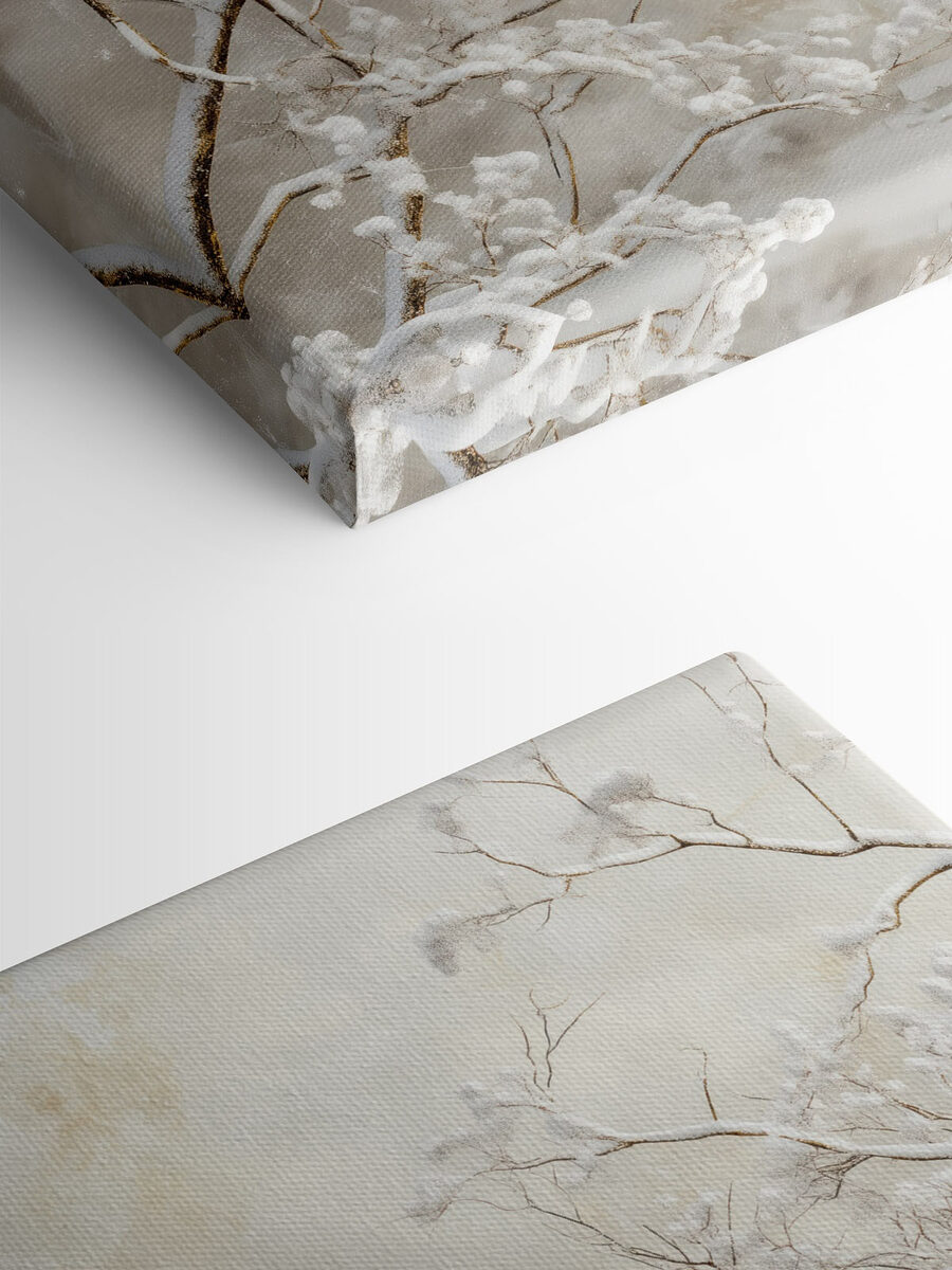 Verändern Sie Ihren Raum mit diesem atemberaubenden Leinwandbild, das schneebedeckte Bäume in einer verträumten Schneelandschaft zeigt. Stellen Sie sich vor, wie Sie es sich mit einer Tasse Kakao gemütlich machen, dieses Bild betrachten und die Kälte des Winters spüren – eine willkommene Flucht aus dem Alltagsstress. Die sanften Farbtöne und Formen schaffen eine friedliche, fast magische Atmosphäre, die sich für jeden Raum eignet. Ob über einem Kamin oder in einer ruhigen Ecke, sie bringt einen Hauch von Natur ins Haus und erinnert uns an die Schönheit des Einfachen. Stellen Sie es sich vor: Jeder Blick ist wie ein frischer Wind.