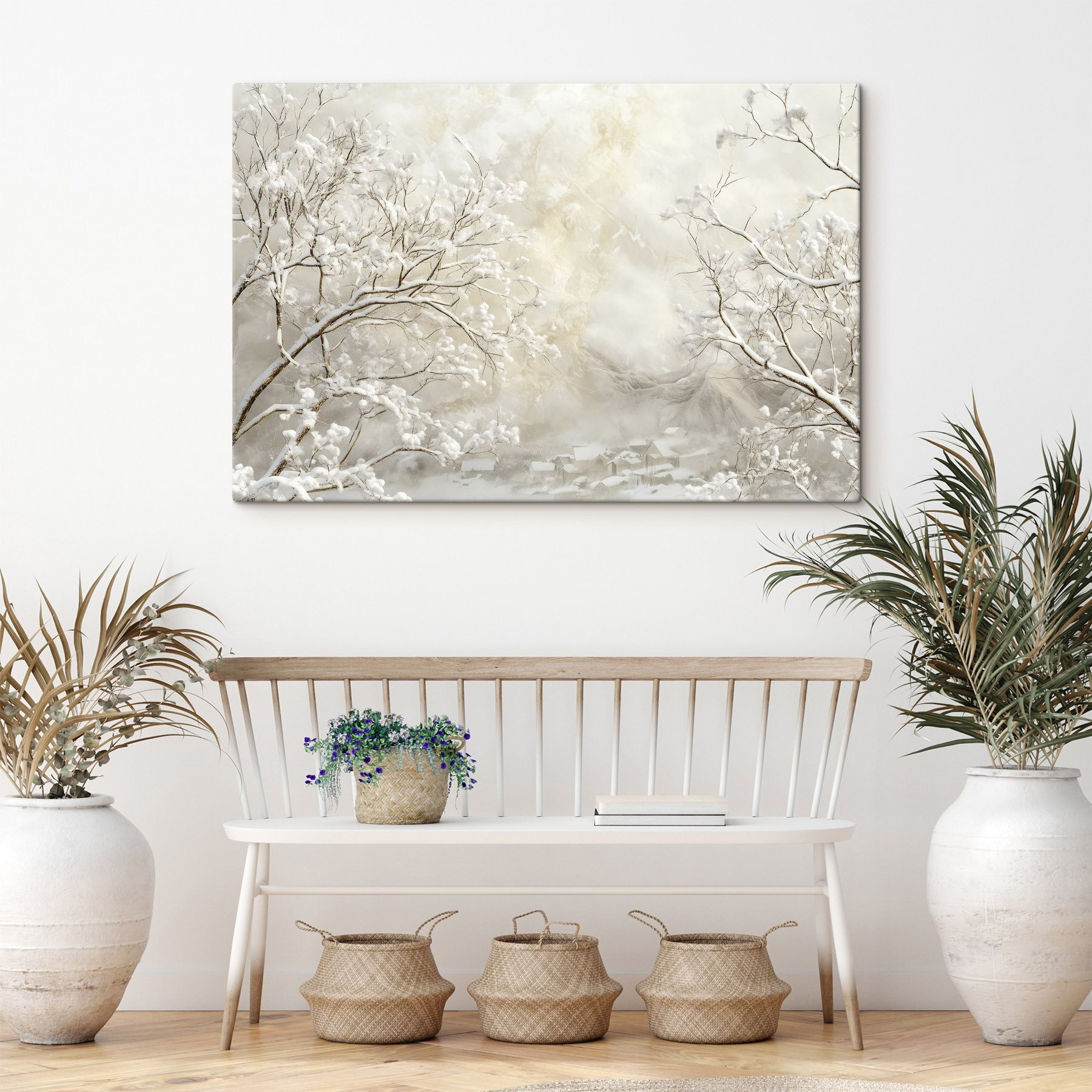 Verändern Sie Ihren Raum mit diesem atemberaubenden Leinwandbild, das schneebedeckte Bäume in einer verträumten Schneelandschaft zeigt. Stellen Sie sich vor, wie Sie es sich mit einer Tasse Kakao gemütlich machen, dieses Bild betrachten und die Kälte des Winters spüren – eine willkommene Flucht aus dem Alltagsstress. Die sanften Farbtöne und Formen schaffen eine friedliche, fast magische Atmosphäre, die sich für jeden Raum eignet. Ob über einem Kamin oder in einer ruhigen Ecke, sie bringt einen Hauch von Natur ins Haus und erinnert uns an die Schönheit des Einfachen. Stellen Sie es sich vor: Jeder Blick ist wie ein frischer Wind.