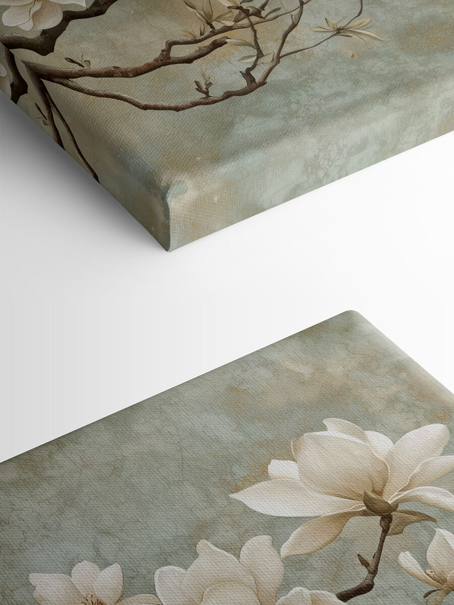 Dieser wunderschöne Leinwanddruck mit weißen Blumen, die zart auf Zweigen ruhen, verleiht jedem Raum eine neue Note. Es ist, als würde man einen ruhigen Garten ins Haus holen, perfekt für eine gemütliche Ecke oder ein lebhaftes Wohnzimmer. Stellen Sie sich vor, Sie machen es sich mit einer Tasse Tee gemütlich und betrachten diese zarten Blüten – und plötzlich wirkt alles ein bisschen friedlicher. Es ist eine subtile Anspielung auf die Eleganz der Natur, die zu Ruhe und Wärme einlädt. Außerdem passen die sanften Farben mühelos zu jedem Einrichtungsstil, ob modern oder klassisch. Ein bisschen floralen Charme hat jeder verdient, finden Sie nicht auch?