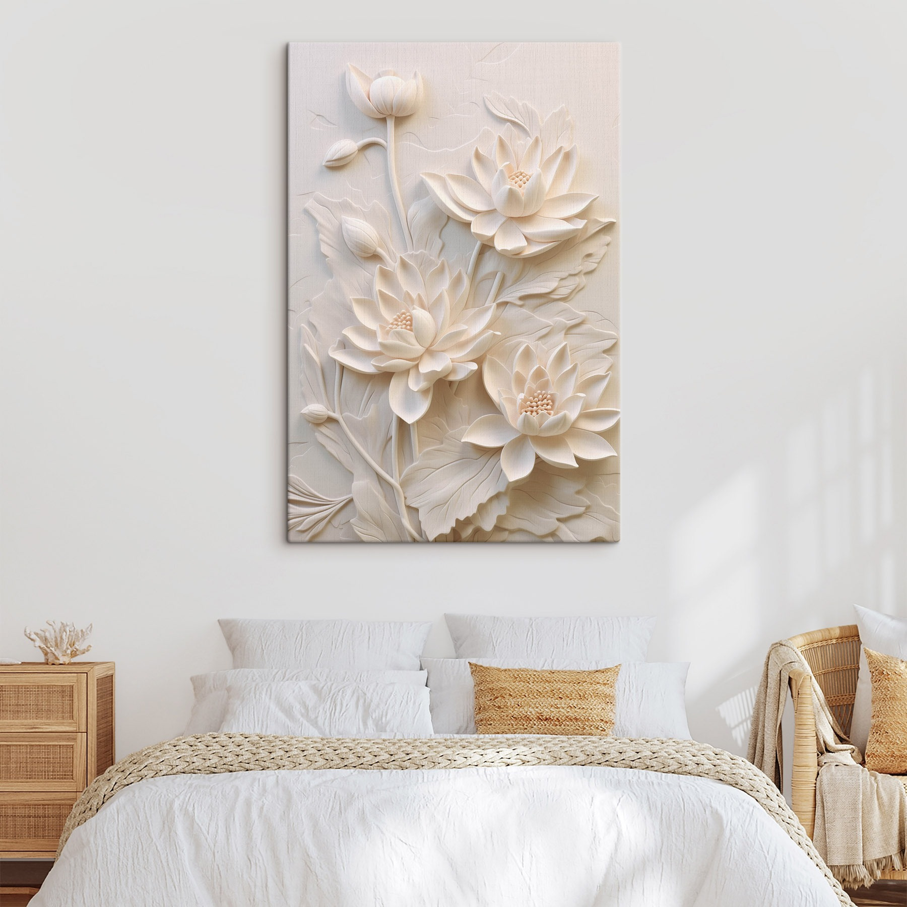 Verändern Sie Ihren Raum mit diesem atemberaubenden Leinwanddruck, der eine zarte weiße Blumenschnitzerei zeigt, die aussieht, als wäre sie in einem ruhigen Garten gefunden worden. Es ist perfekt, um jedem Raum einen Hauch von Eleganz zu verleihen. Stellen Sie sich vor, Sie gehen vorbei und spüren diese stille Freude, wie einen Hauch von frischer Luft. Ob über der Couch oder in einer gemütlichen Leseecke, dieses Stück passt in jeden Raum und lädt zu einer ruhigen Atmosphäre ein. Außerdem ist es die Art von Kunstwerk, die zu Gesprächen anregt. Freunde werden fragen, woher es stammt, und Sie werden sagen können, dass es Ihr kleines Stückchen Blumenhimmel ist.